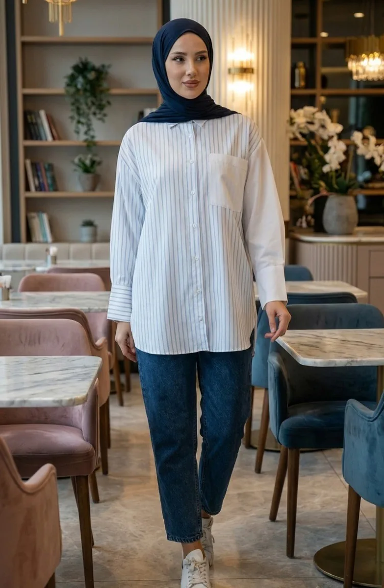 Blaufarbe wird verwendet. Baumwollgewebe hat eine saugfähige Textur. Entworfen mit gestreiften gemusterten Stoff. Das Produkt kann mit Ungefüttert verwenden. Es ist Langärmlig. Hemdkragen ist ein Muss für viele Kombinationen. Es ist für vier Jahreszeiten geeignet. Große Größen Option ist verfügbar.