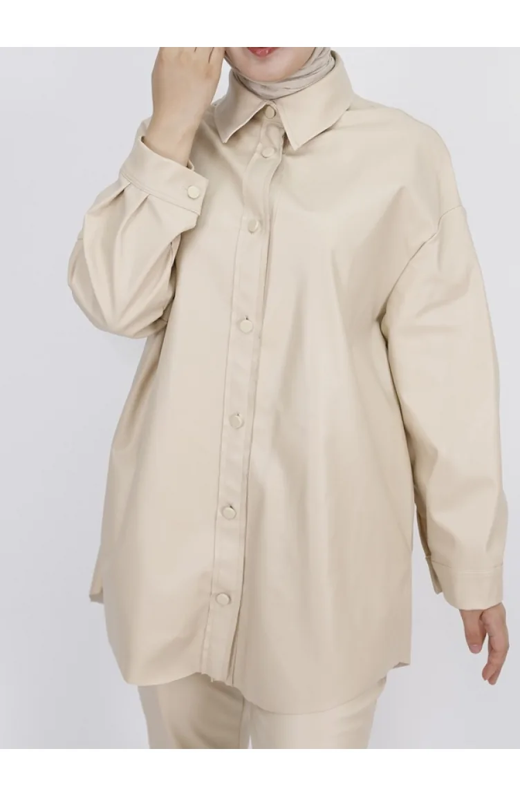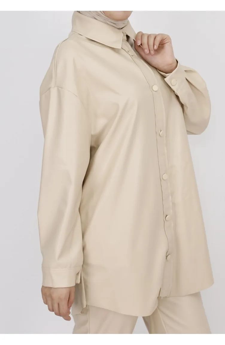 Geknöpftes Kunstlederhemd 10361-03 Stone 10361-03