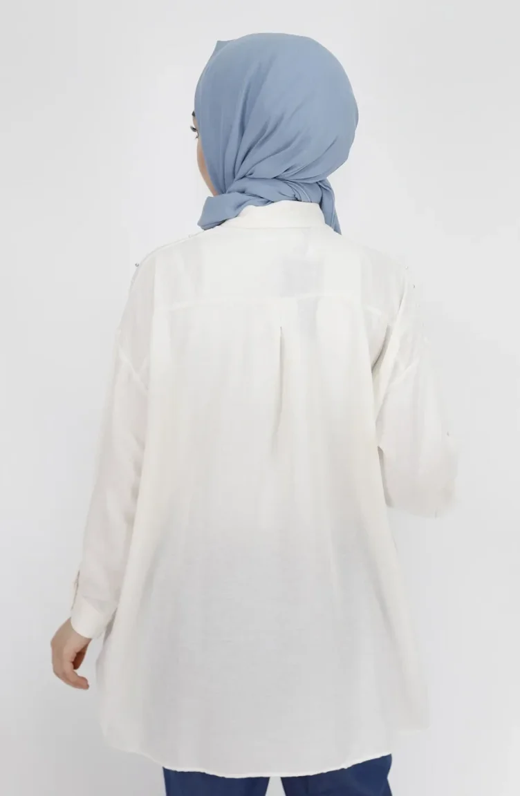 Naturfarbe wird verwendet. Das Leinengewebe ist hitzebeständig. Und zu allen Jahreszeiten verfügbar. Es ist eine klare Sicht. Für die Zubehör zu dem Produkt ist visual Angereichert. Es ist Langärmlig. Hemdkragen ist ein Muss für viele Kombinationen. Entwickelt für den Sommer. Frau. Geniş Kesim.
