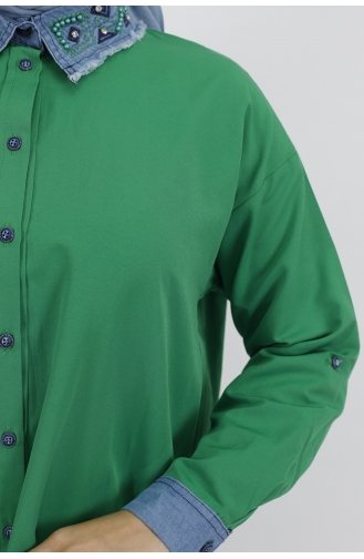 Es wurde Grünfarbe verwendet. Popeline hat eine Struktur aus gewebtem Baumwollgewebe. Es ist eine klare Sicht. Es ist Langärmlig. Hemdkragen ist ein Muss für viele Kombinationen. Entwickelt für den Sommer. Frau. Der Körpergröße, den die Models trägt, ist optisch visuelle körpergröße.
