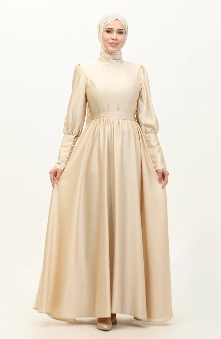Abendkleid Aus Satin Mit Körbchen 6080-10 Hellbeige 6080-10