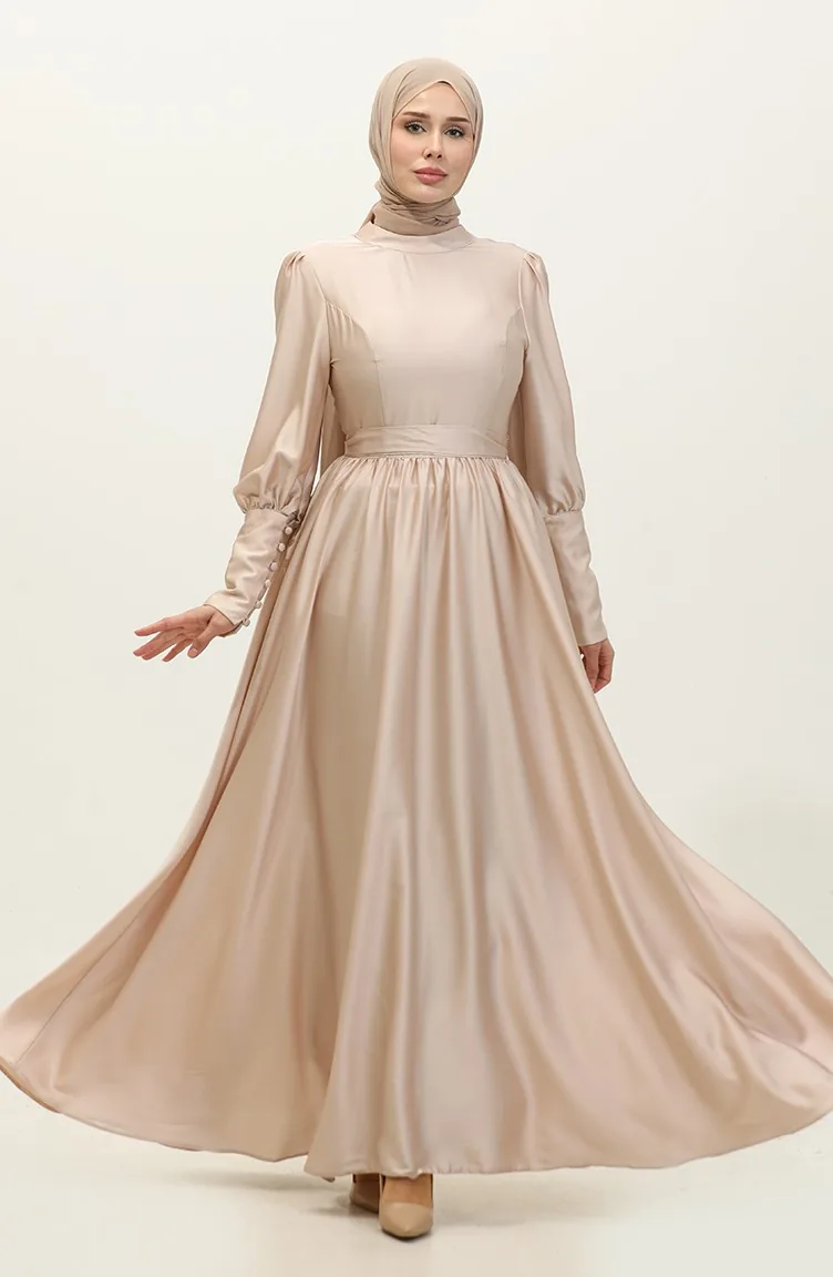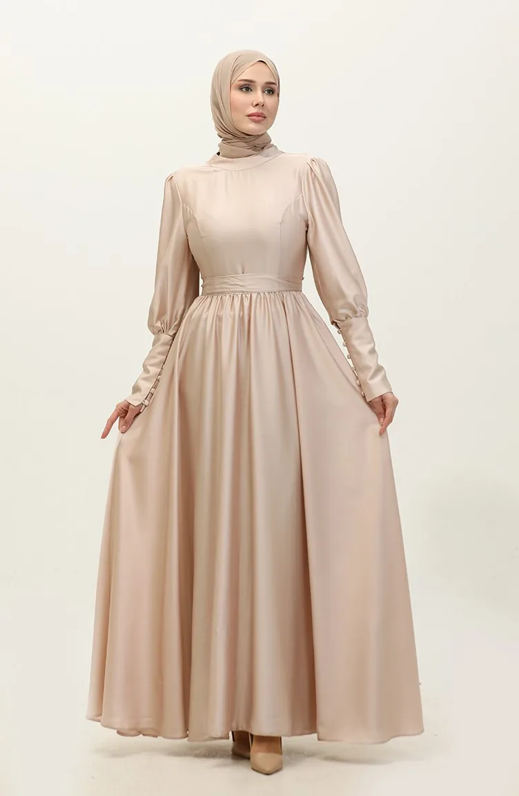 Abendkleid Aus Satin Mit Körbchen 6080-14 Hellpuder 6080-14
