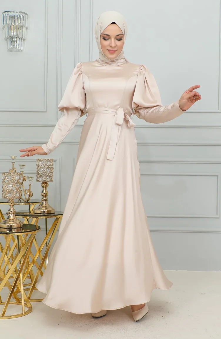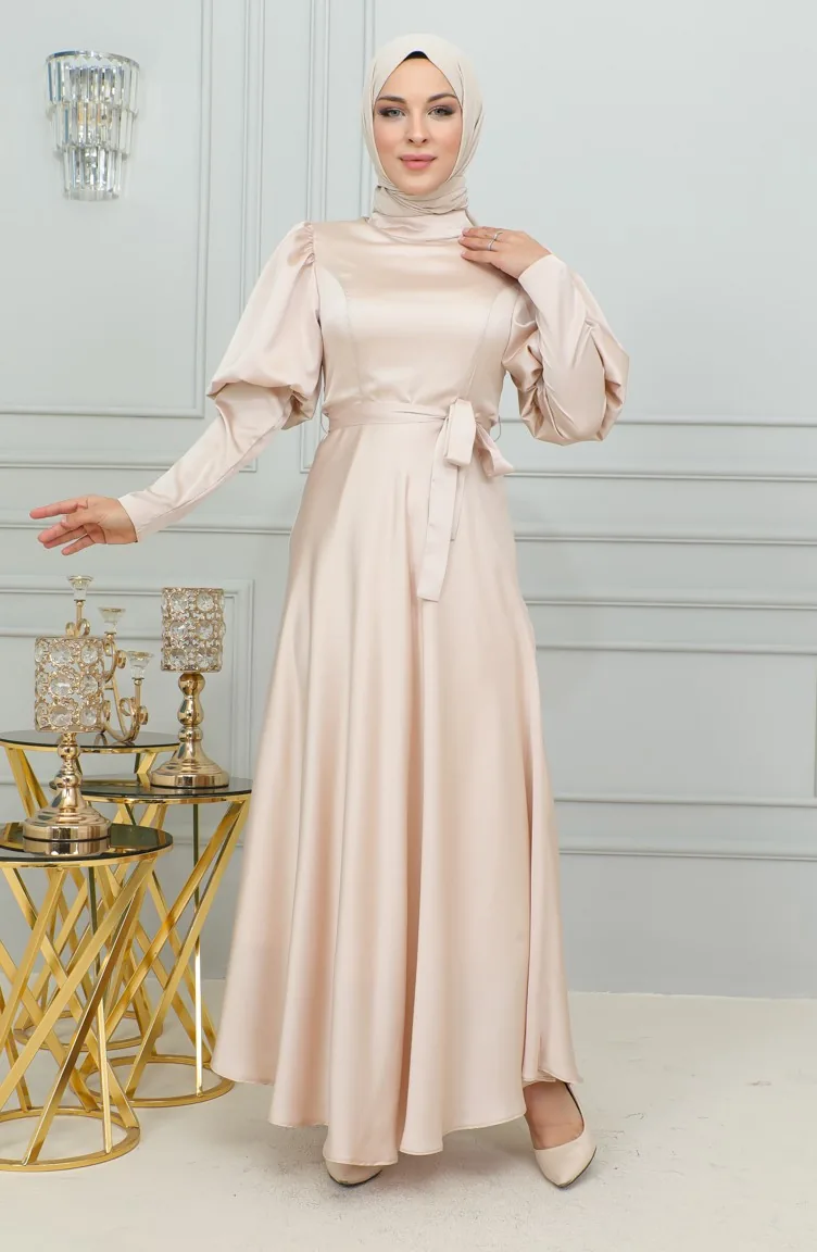 Abendkleid Mit Detaillierten Körbchenärmeln 6084-04 Puder 6084-04