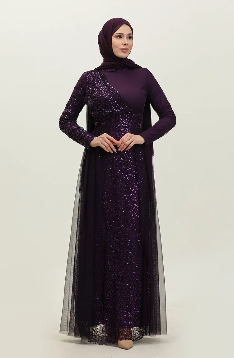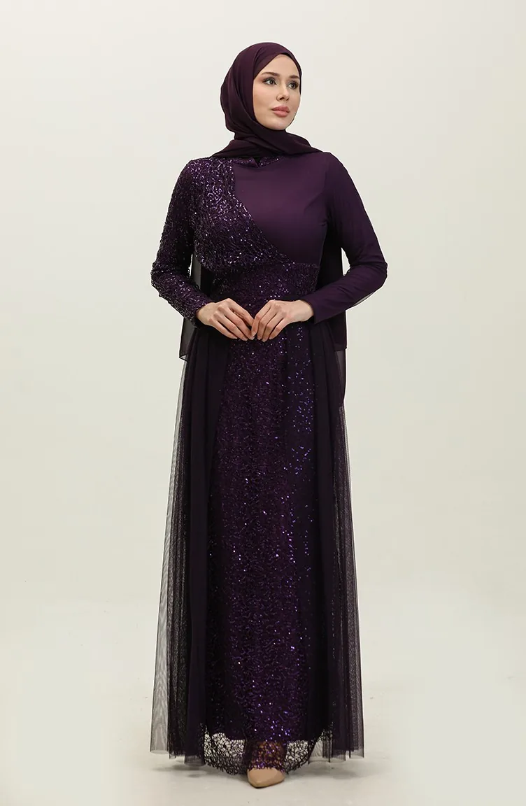 Abendkleid Mit Pailletten 5345A-06 Lila 5345A-06