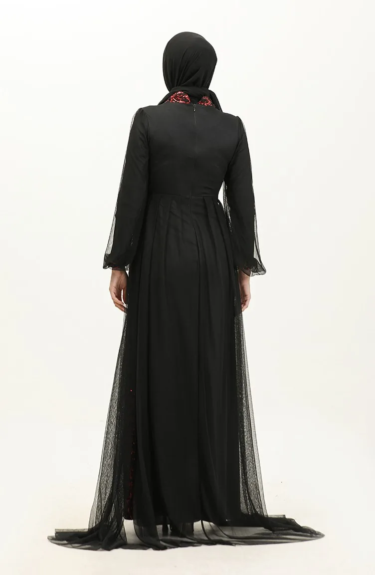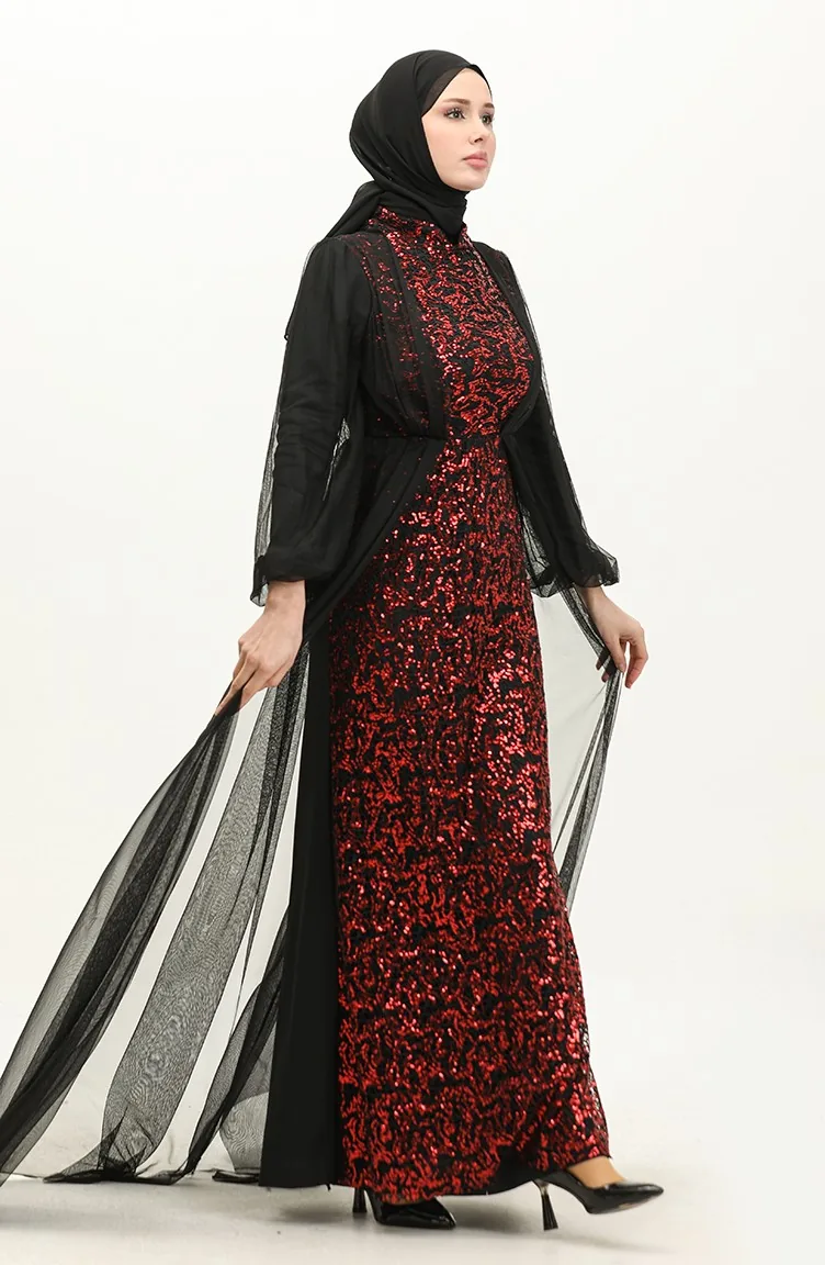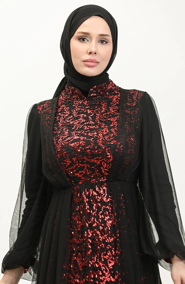 Abendkleid Mit Pailletten 6383A-06 Schwarz Rot 6383A-06