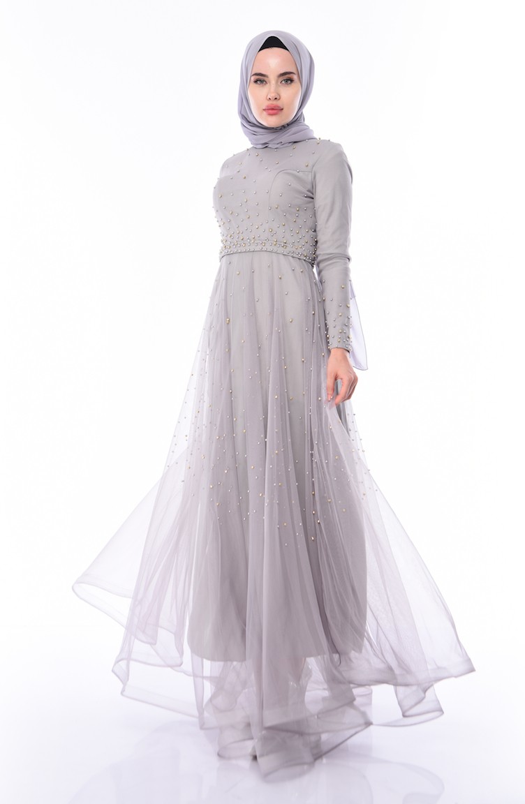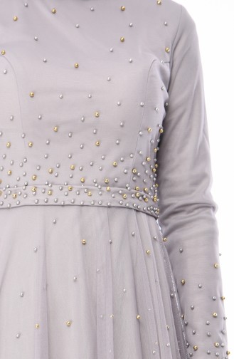 Abendkleid mit Perlen 4568-01 Grau 4568-01