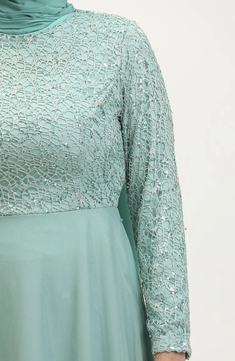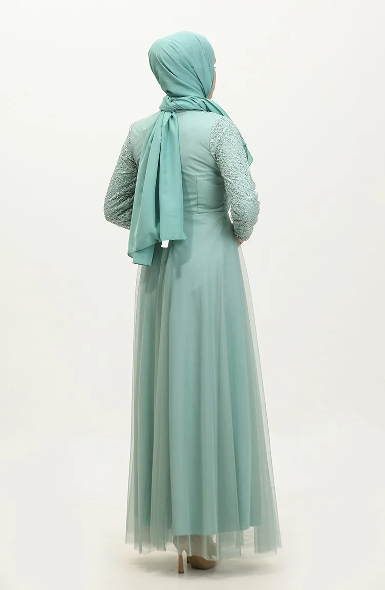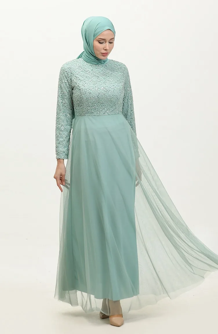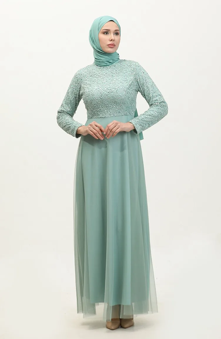 Abendkleid Mit Spitzengürtel 5353A-12 Grün 5353A-12