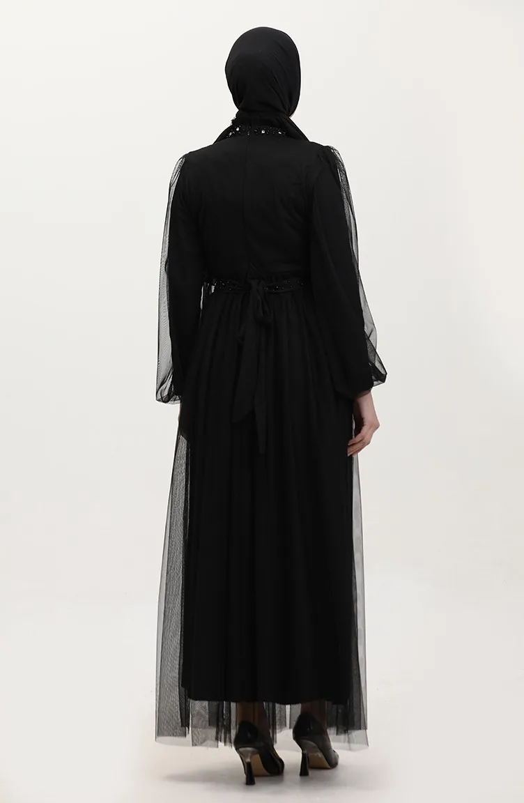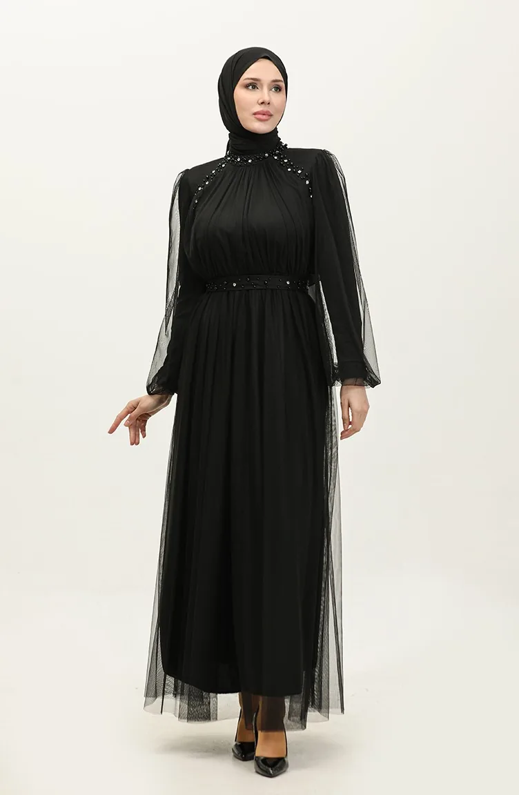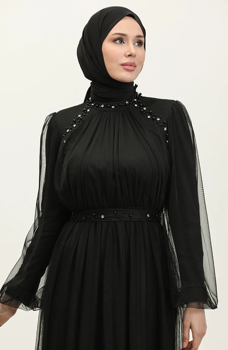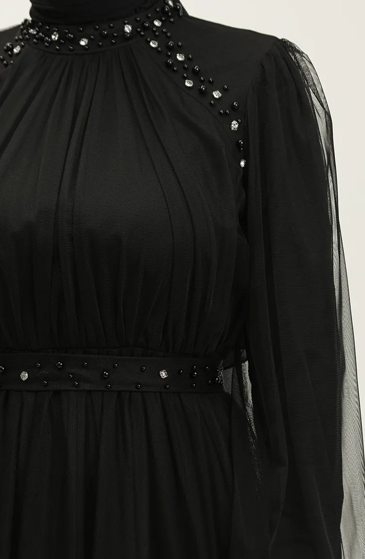 Perlenbesticktes Abendkleid 6208-01 Schwarz 6208-01