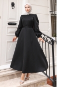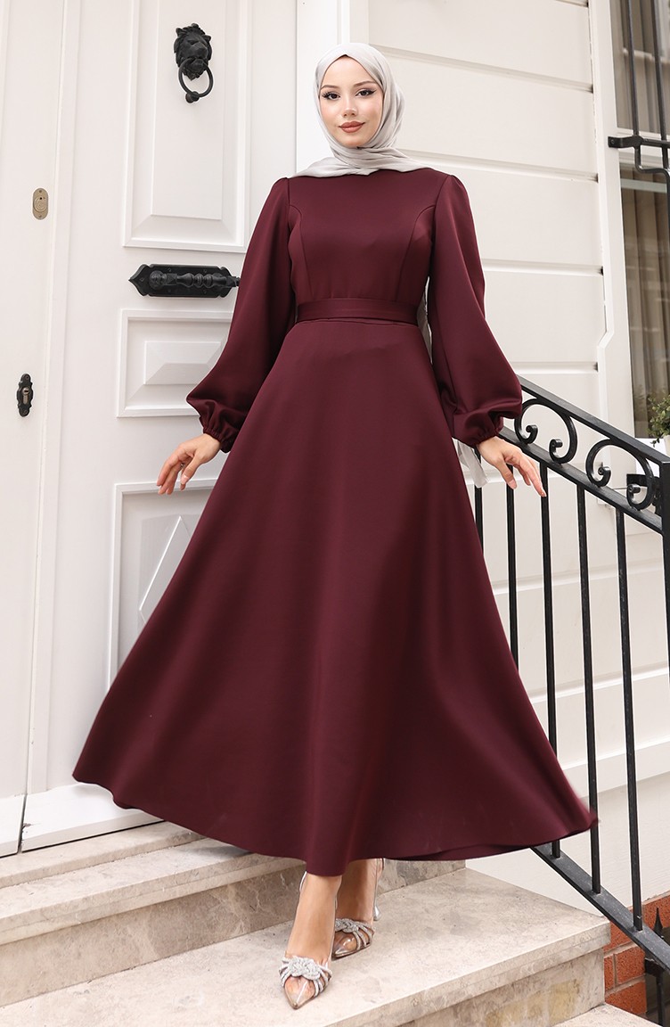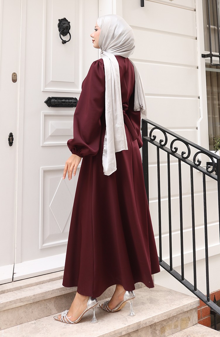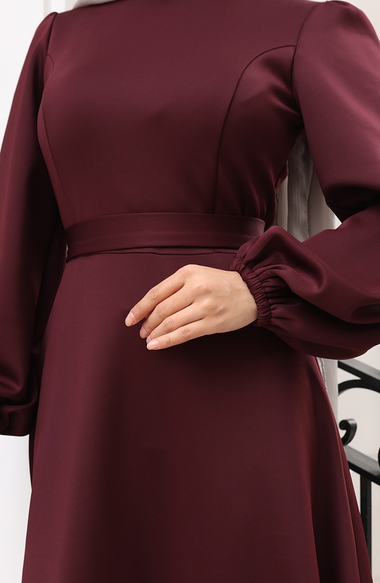 Schlichtes Abendkleid Mit Elastischen Ärmeln 5614-02 Burgunderrot 5614-02