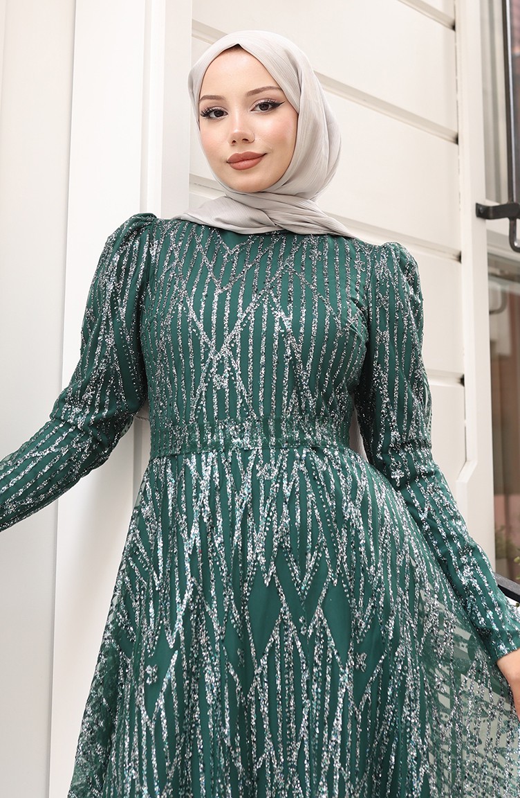 Glitzerndes Abendkleid Mit Gürtel Modell 5613-01 Smaragdgrün 5613-01