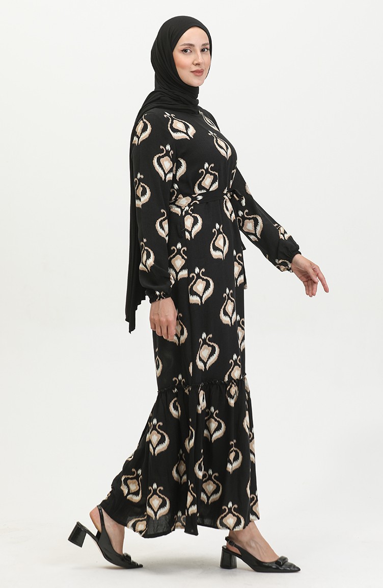 Alisa Volant-Viskosekleid Mit Gürtel 4599A-02 Schwarzer Nerz 4599A-02
