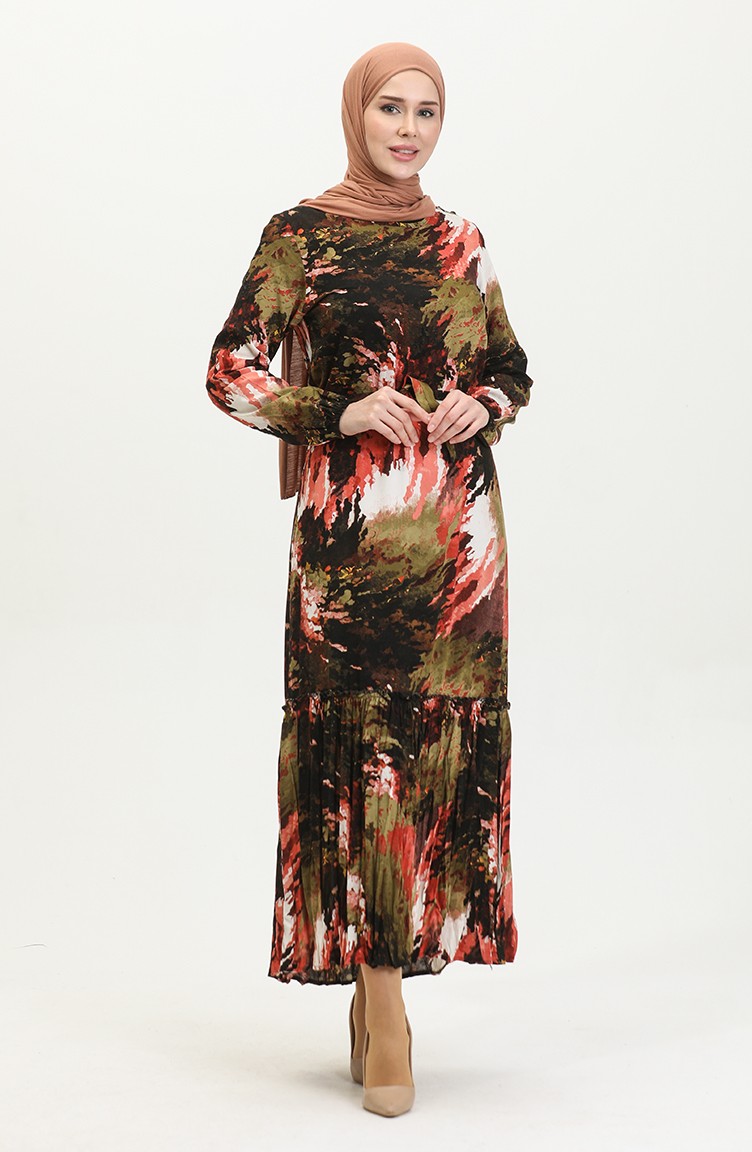 Alisa Volant-Viskosekleid Mit Gürtel 4599J-01 Khaki Schwarz 4599J-01