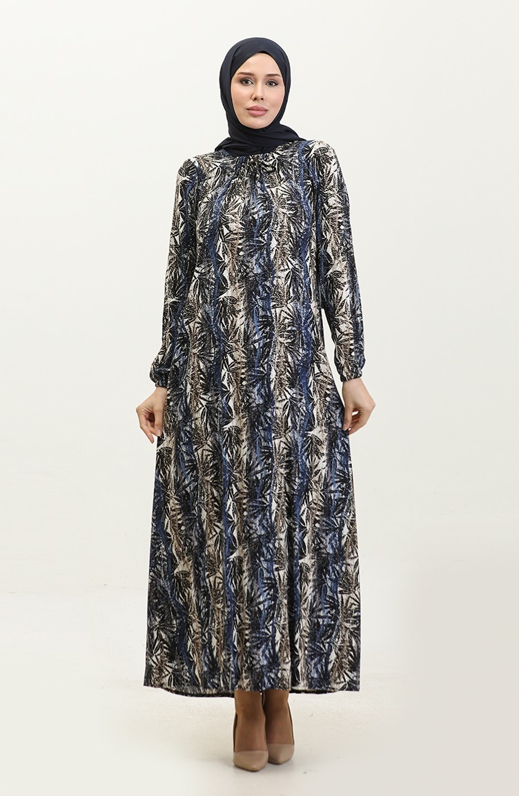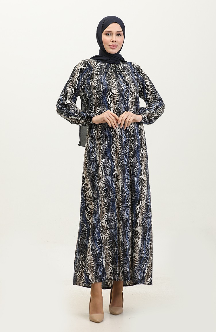 Gemustertes Viskosekleid In Übergröße 44851F-01 Marineblau 44851F-01