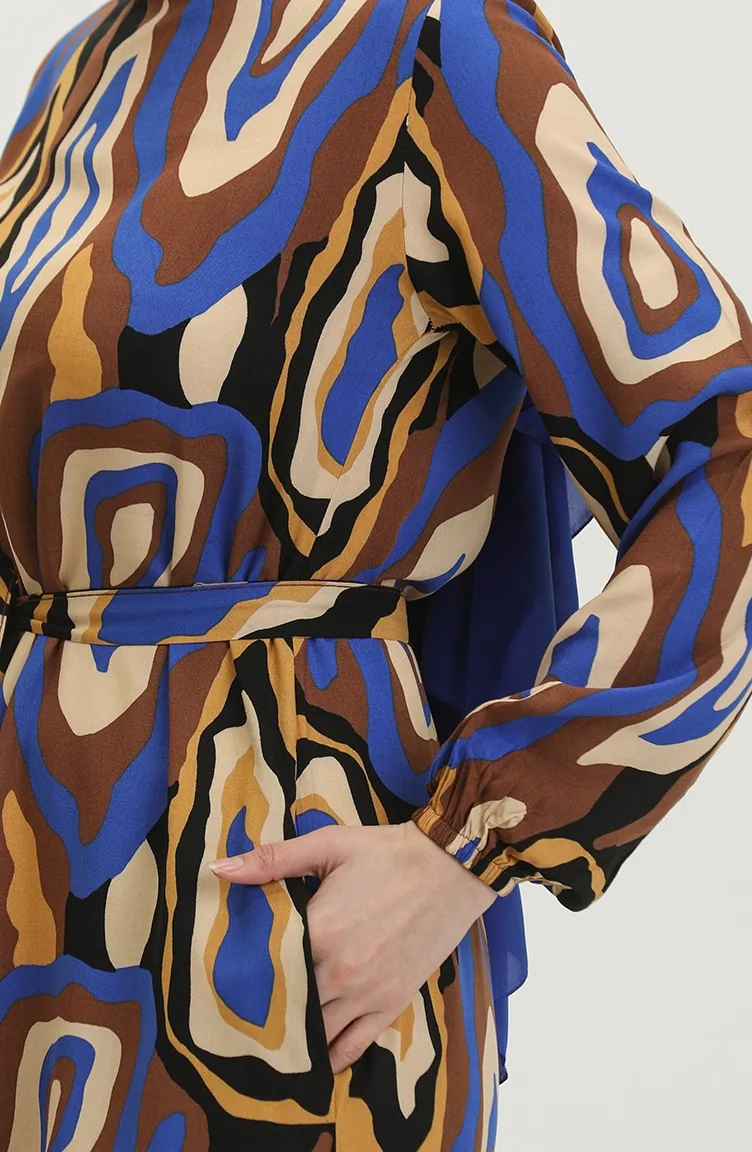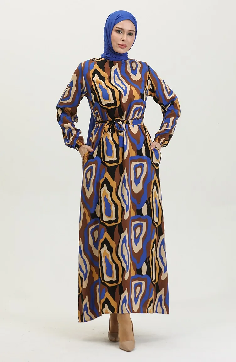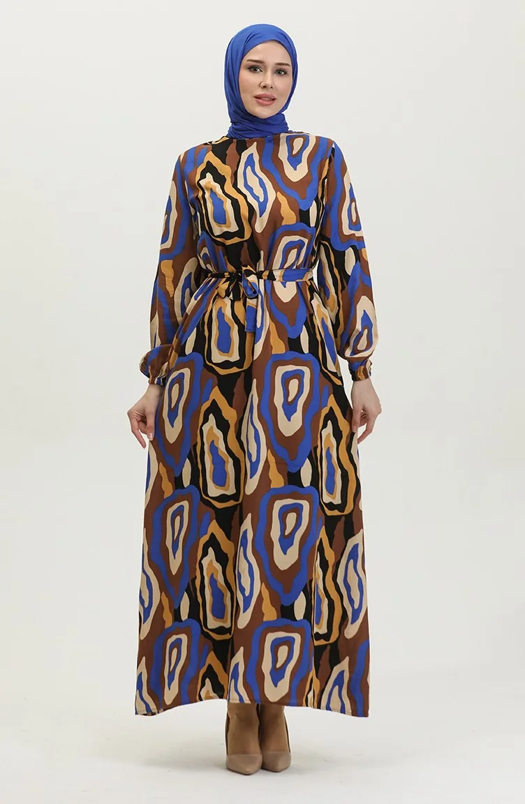 Farbgemustertes Viskosekleid 0390-03 Brown Saks 0390-03