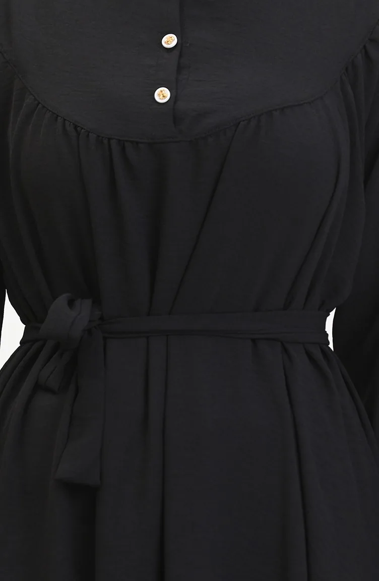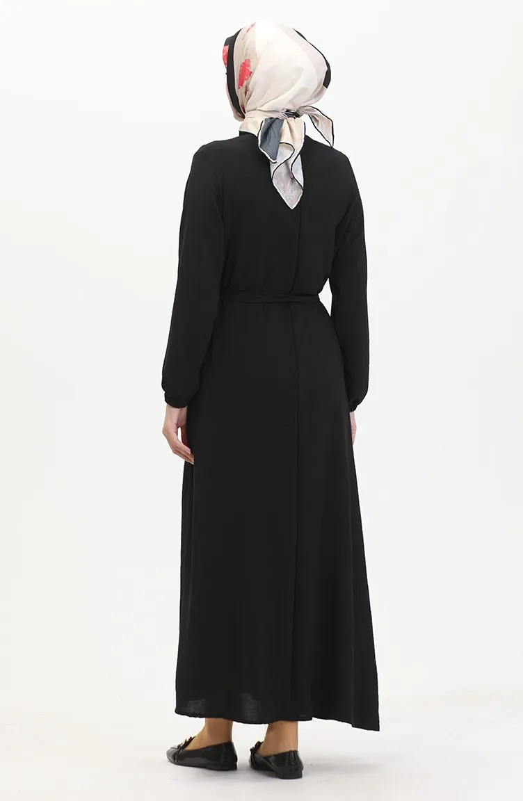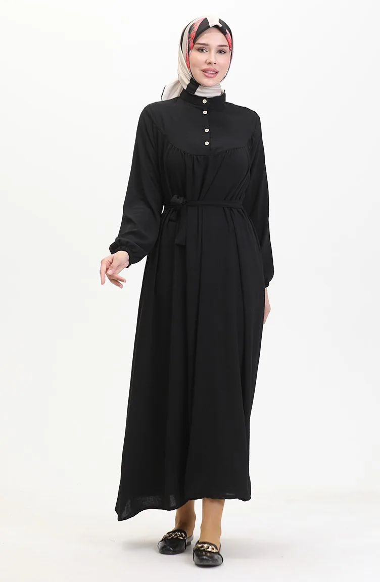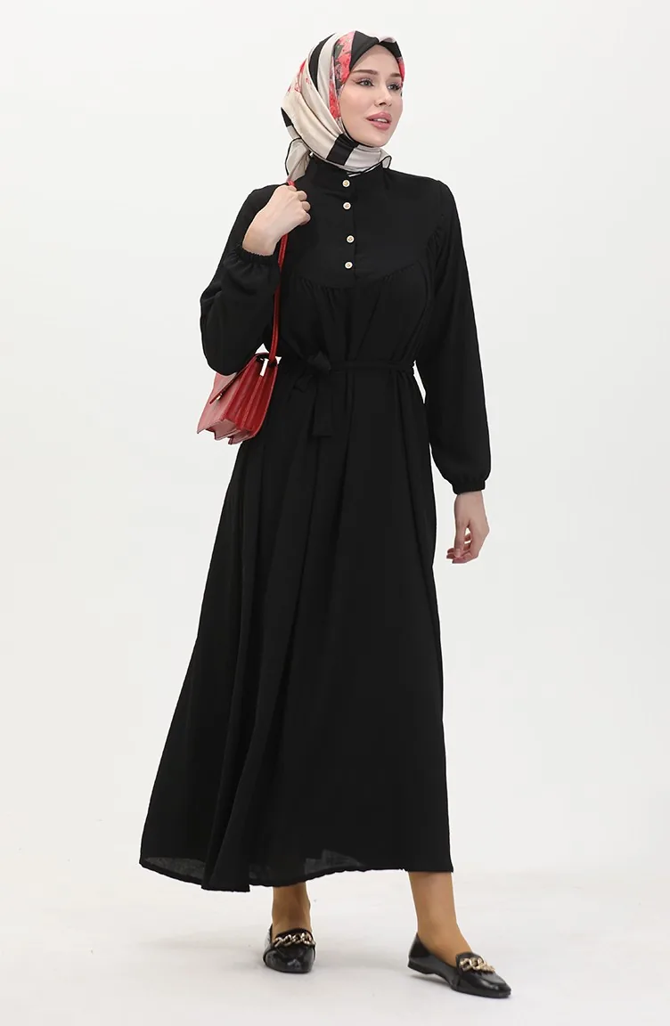 Geknöpftes Kleid Mit Gürtel 0462-04 Schwarz 0462-04