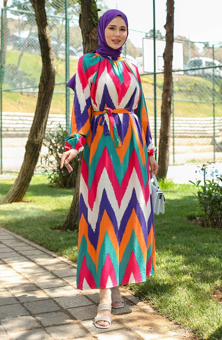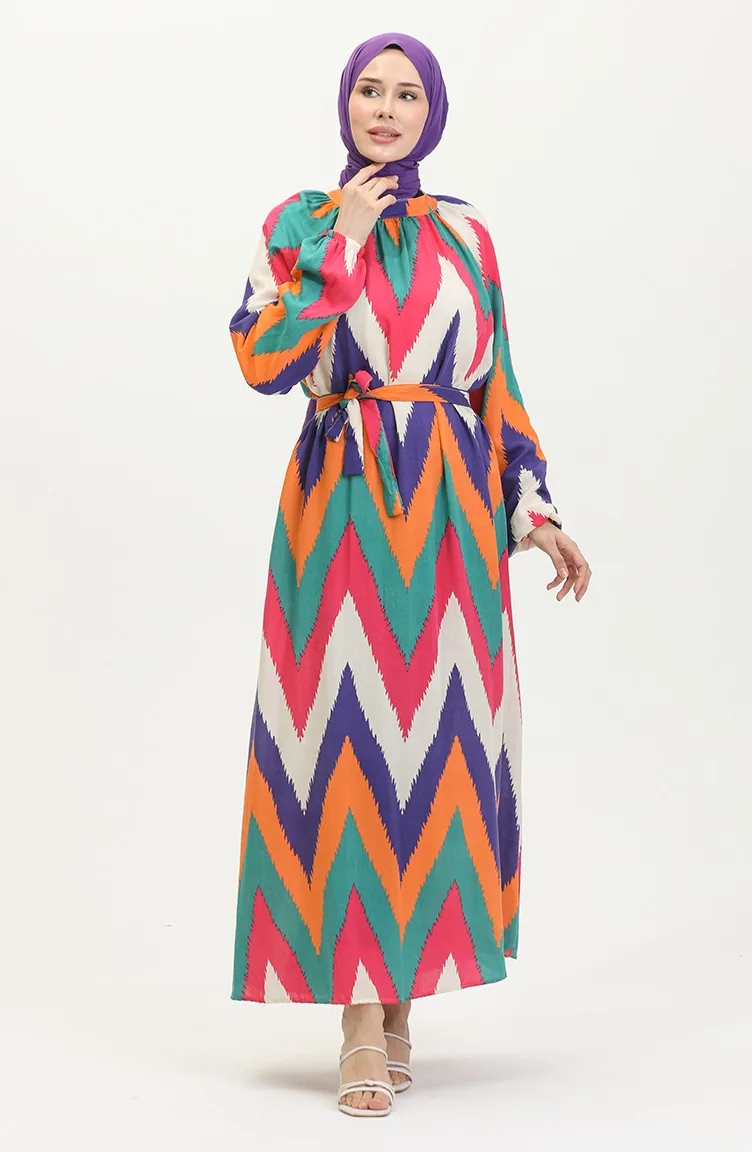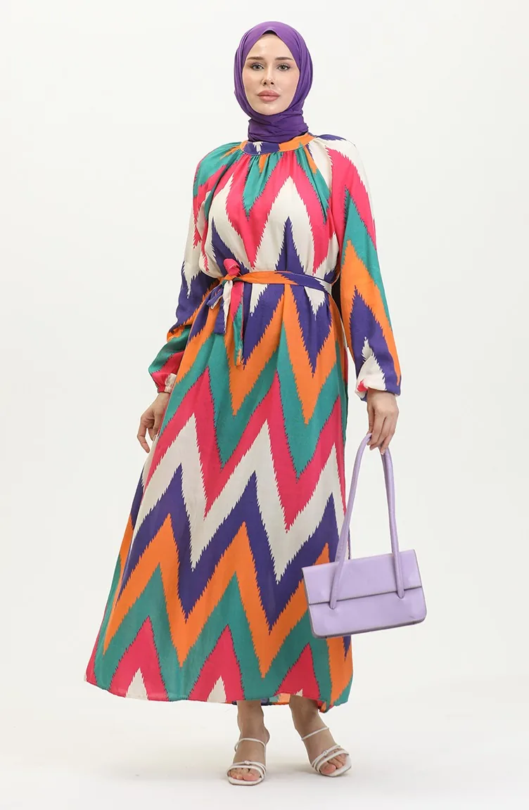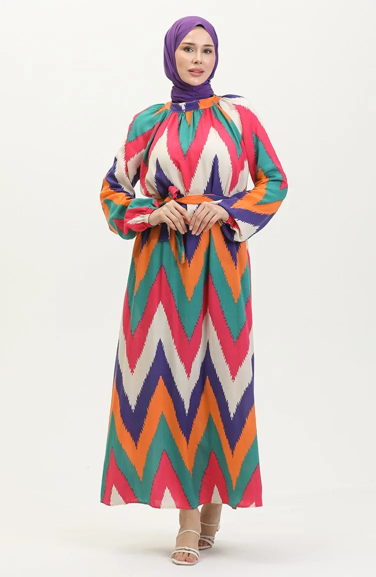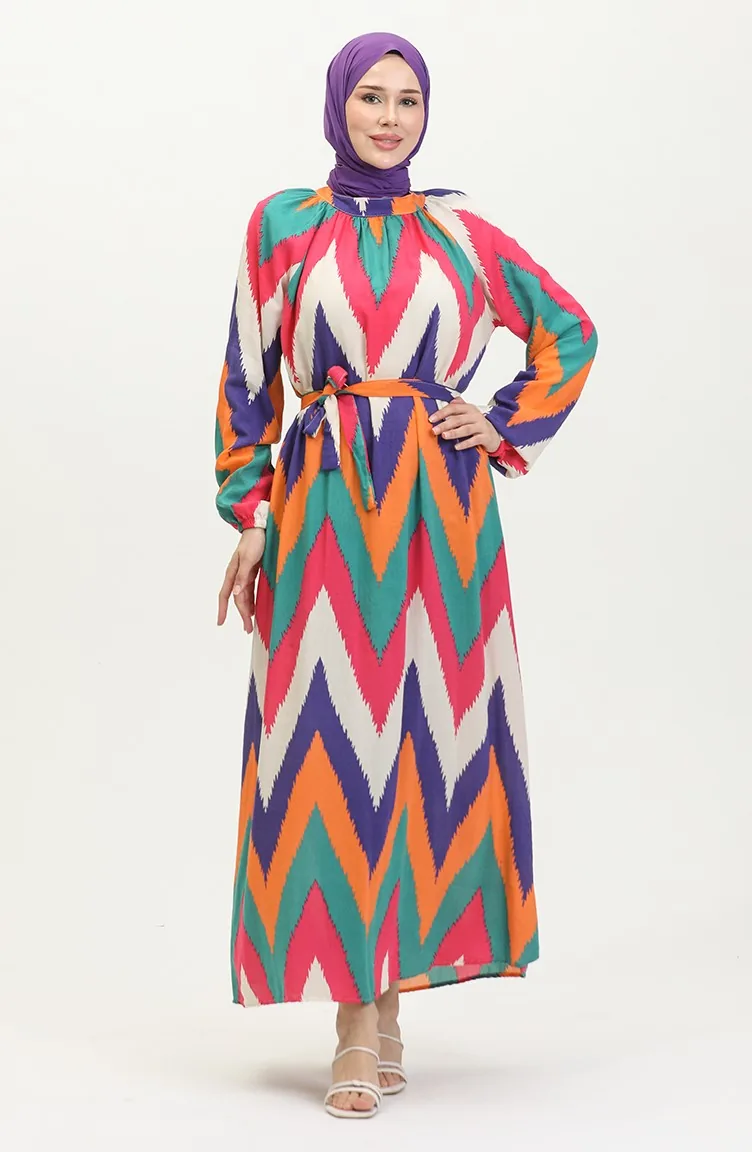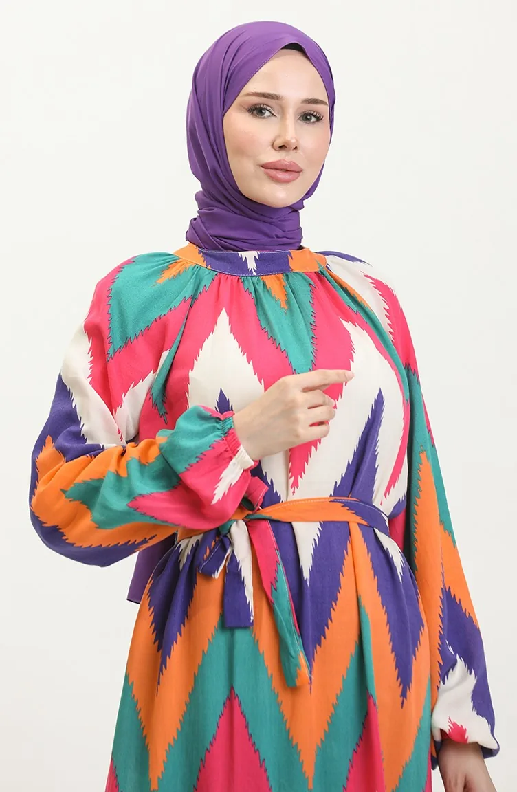 Gemustertes Viskosekleid 0438-04 Rosa 0438-04