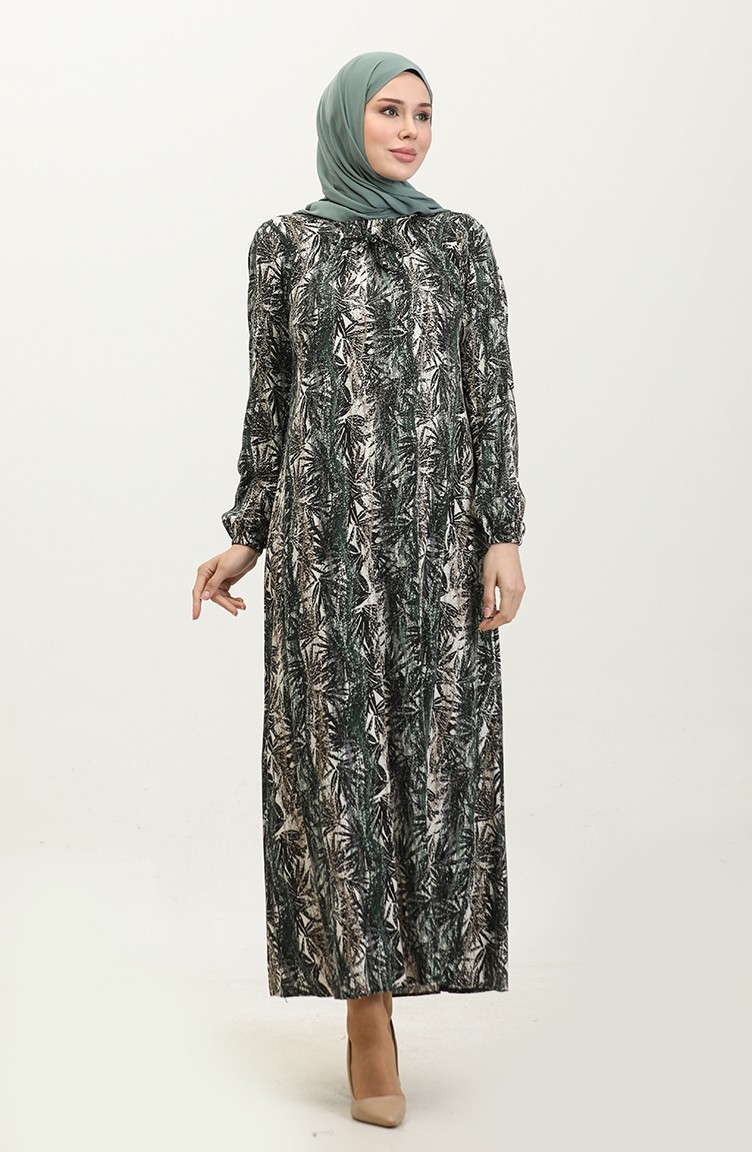 Gemustertes Viskosekleid In Übergröße 44851F-03 Khaki 44851F-03