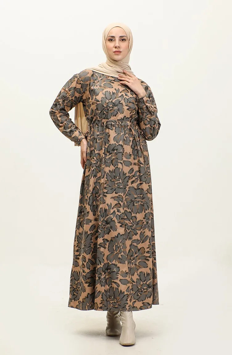 Gemustertes Wildlederkleid Geräuchert 7697 759