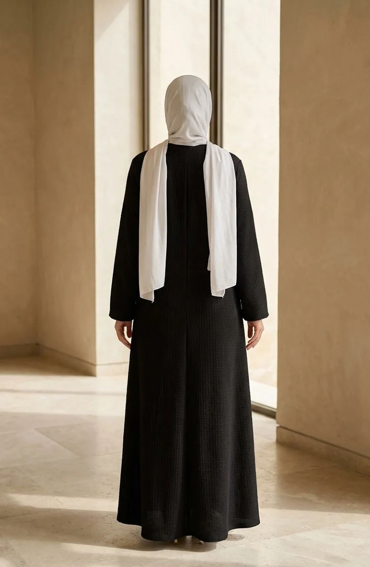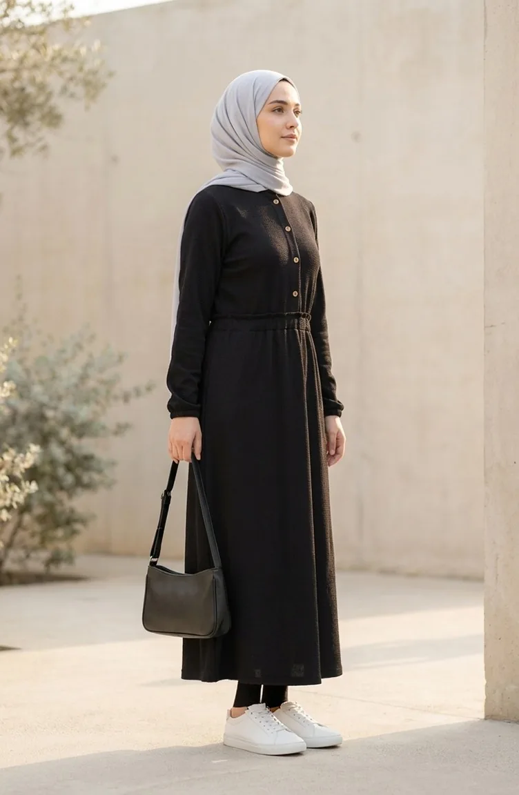 Geripptes Hijab-Kleid Mit Taille 2185-01 Schwarz 2185-01