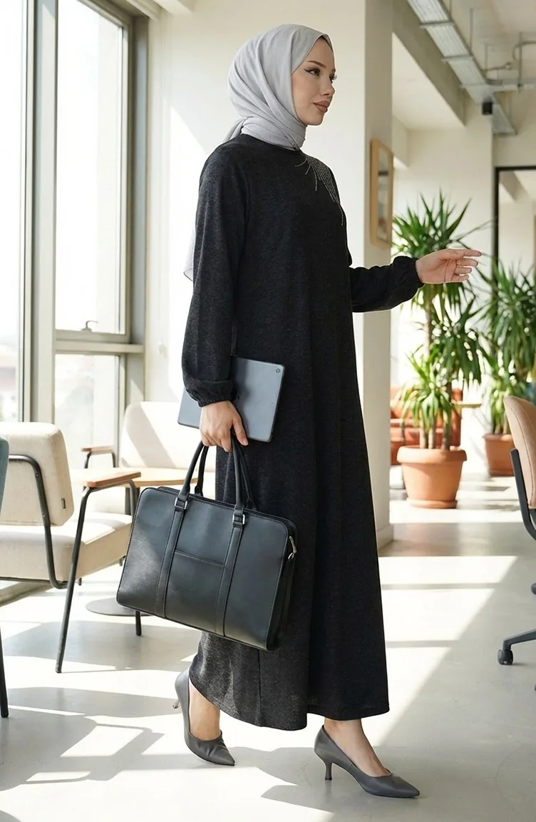 Gestricktes Winter Stone Besticktes Hijab-Kleid 2181-04 Schwarz 2181-04