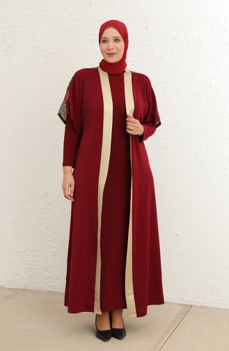Große Größe Kleid-Abaya Zweiteiler 8105-03 Weinrot 8105-03