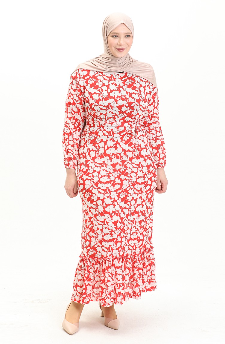 Große Größe Kleid mit Volantdetail 4574M-02 Rot 4574M-02