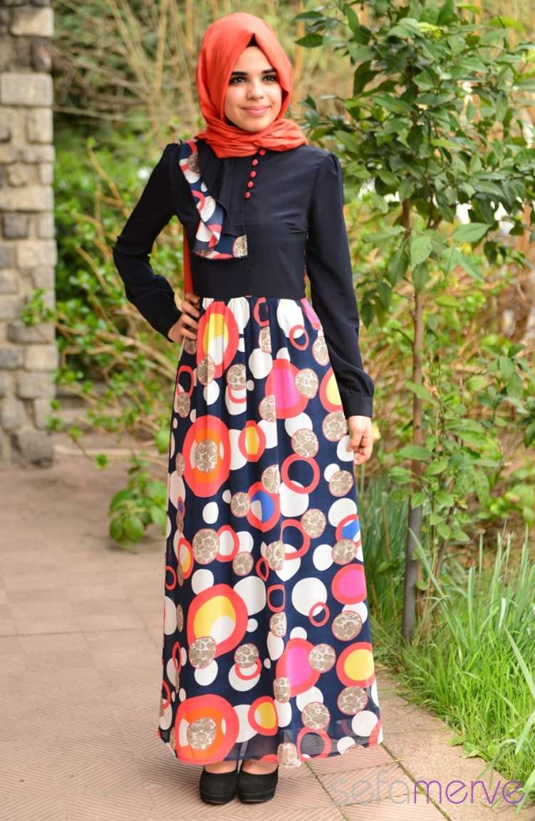 Dunkelblau Hijab Kleider 5268-03