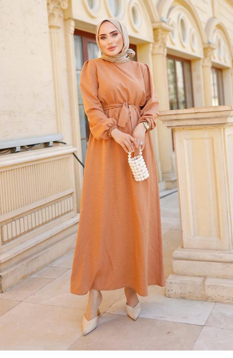 Hijab-Lachskleid Mit Gürteldetail 315