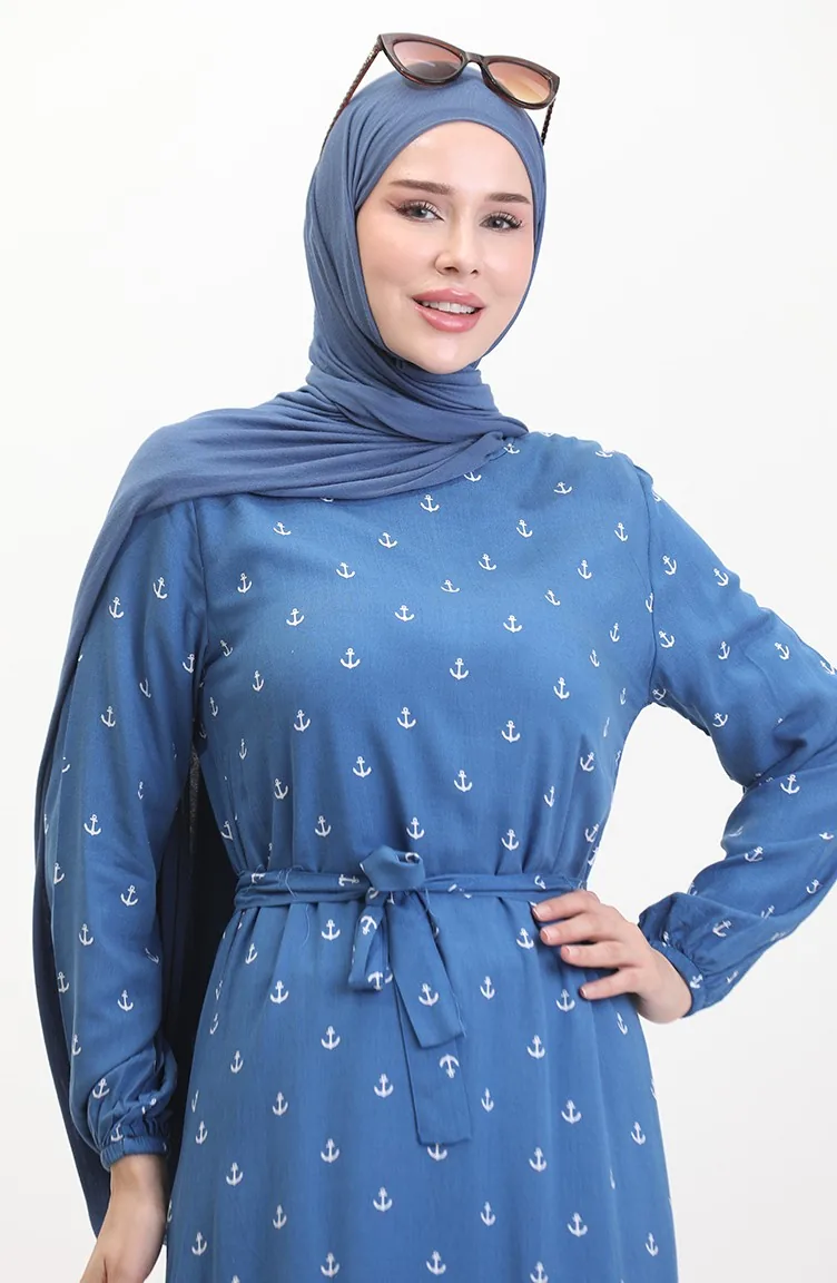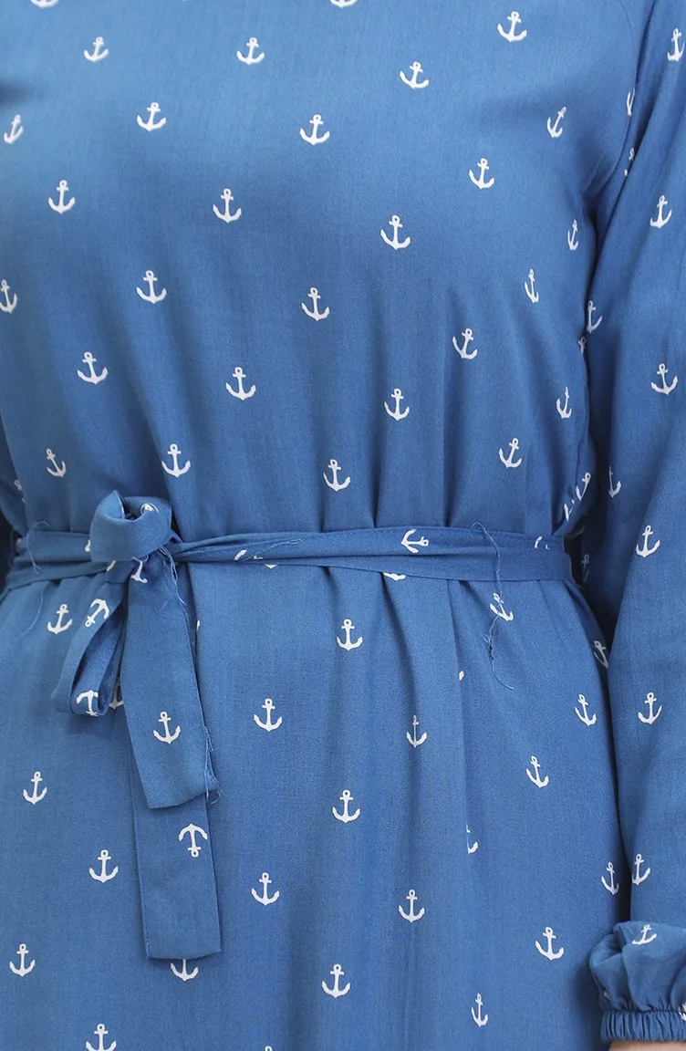 Kleid Mit Ankermuster Und Gürtel 0461-02 Indigo 0461-02