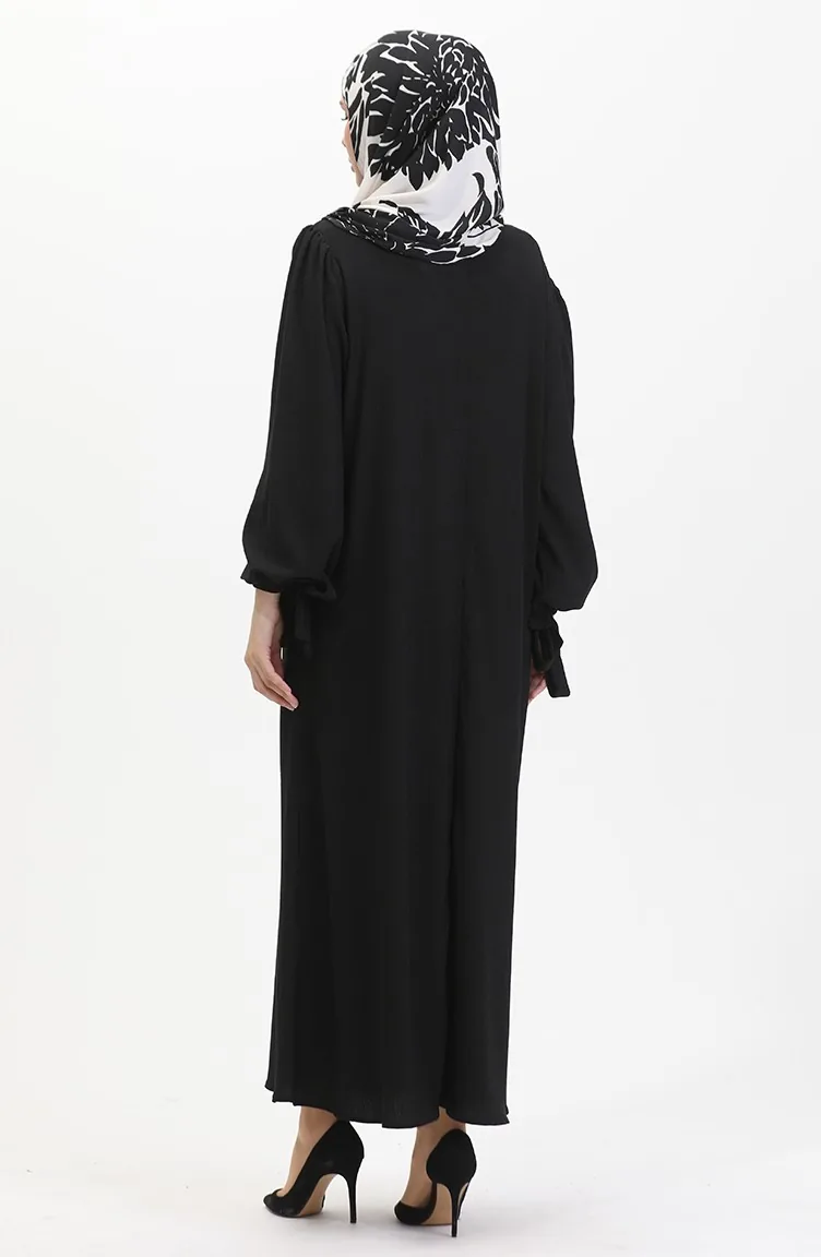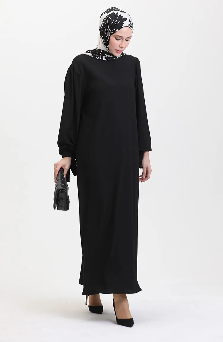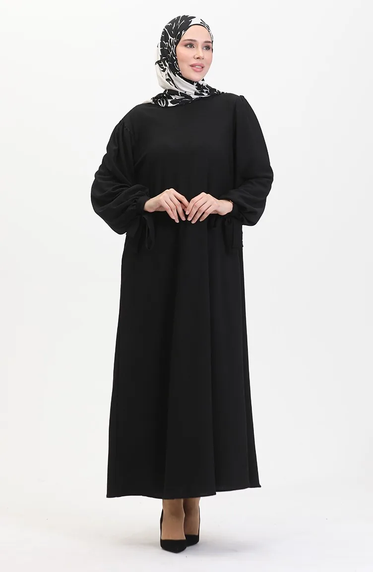 Kleid Mit Gerafften Ärmeln 1053-01 Schwarz 1053-01