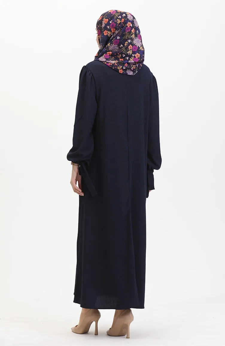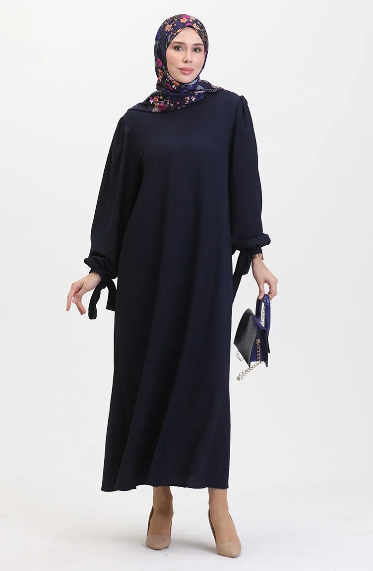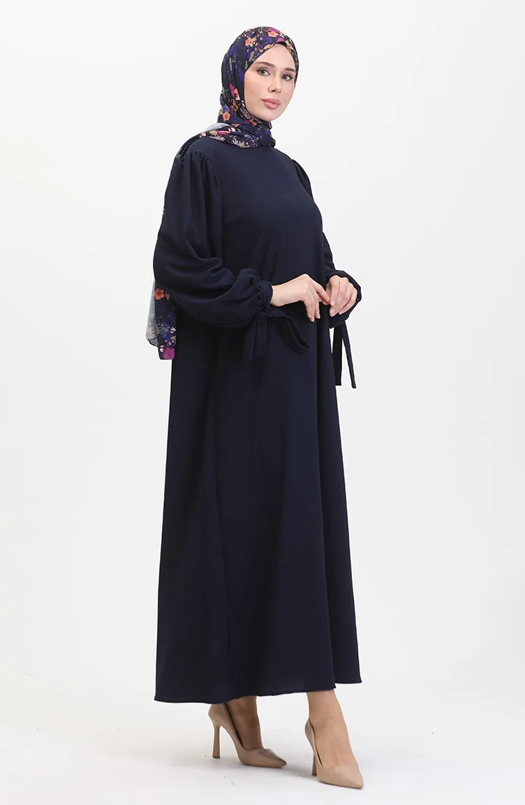 Kleid Mit Gerafften Ärmeln 1053-02 Marineblau 1053-02