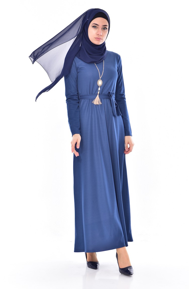 Kleid mit Gürtel 3701-11 Dunkel İndigo 3701-11