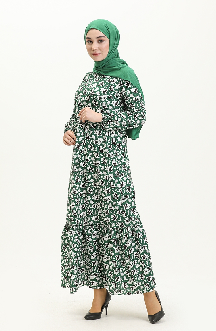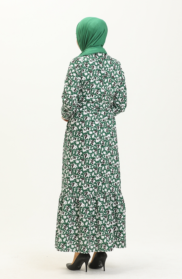 Kleid mit Gürtel und gefältelter Rock 1082-04 Smaragdgrün 1082-04