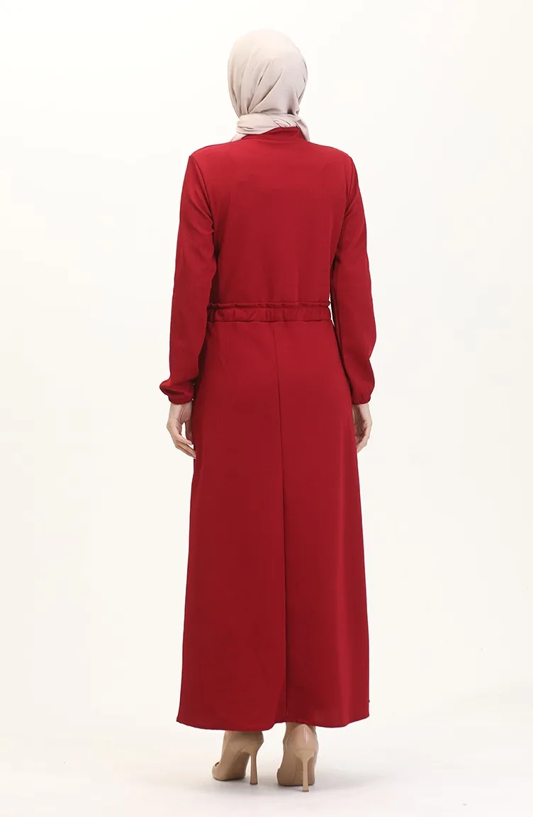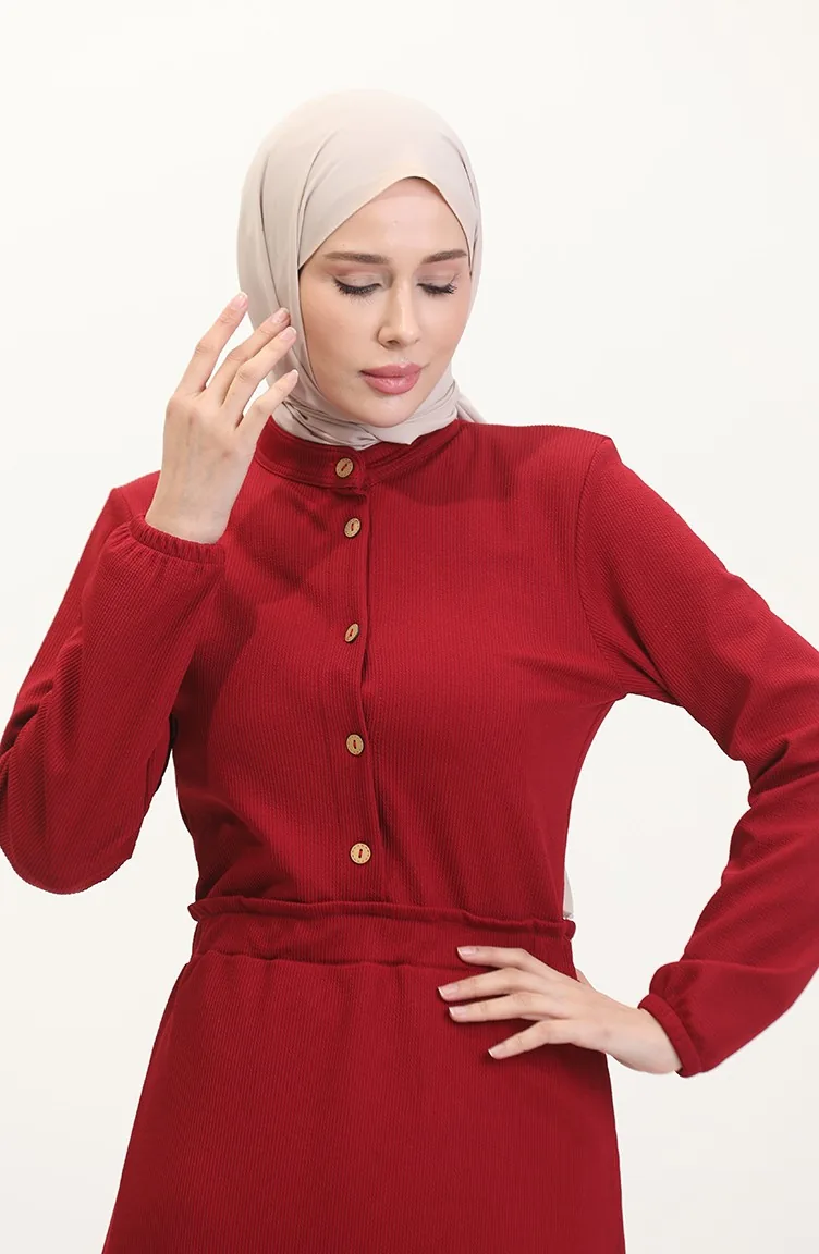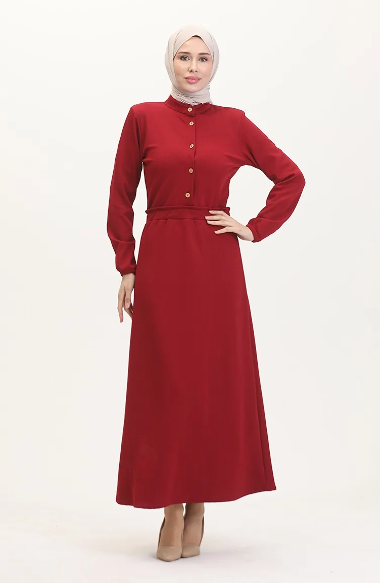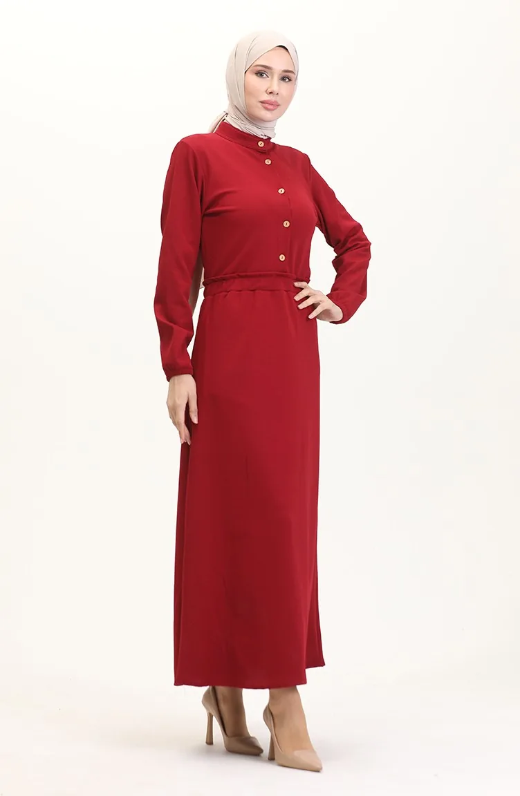 Kleid Mit Prächtigem Kragen Und Halben Knöpfen 0522-01 Weinrot 0522-01