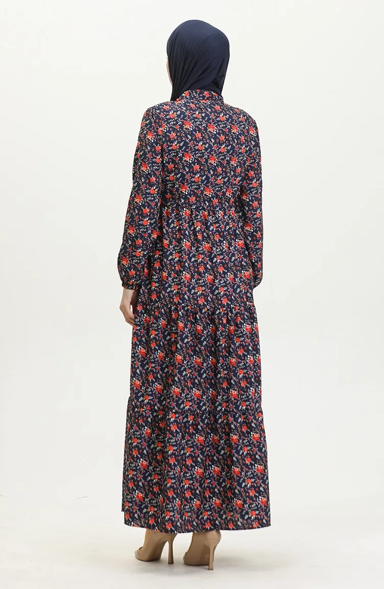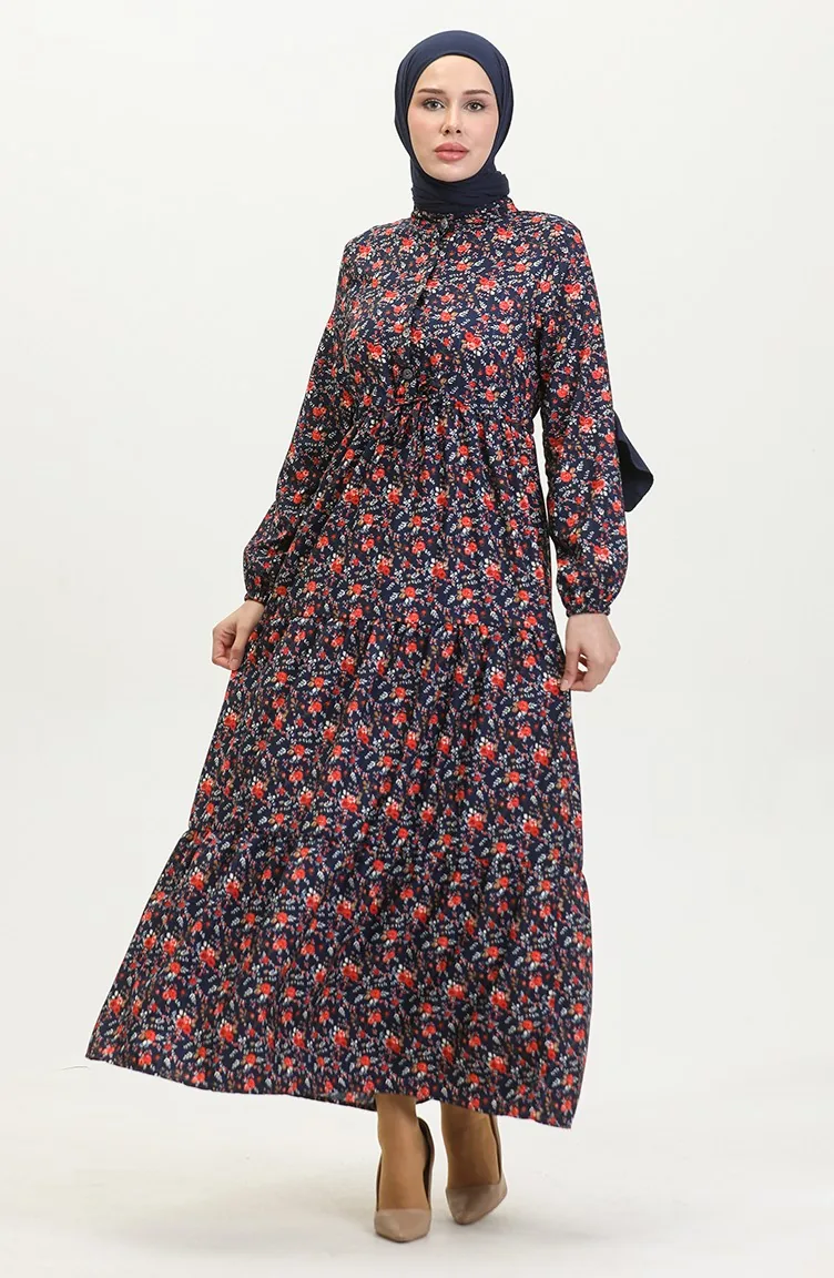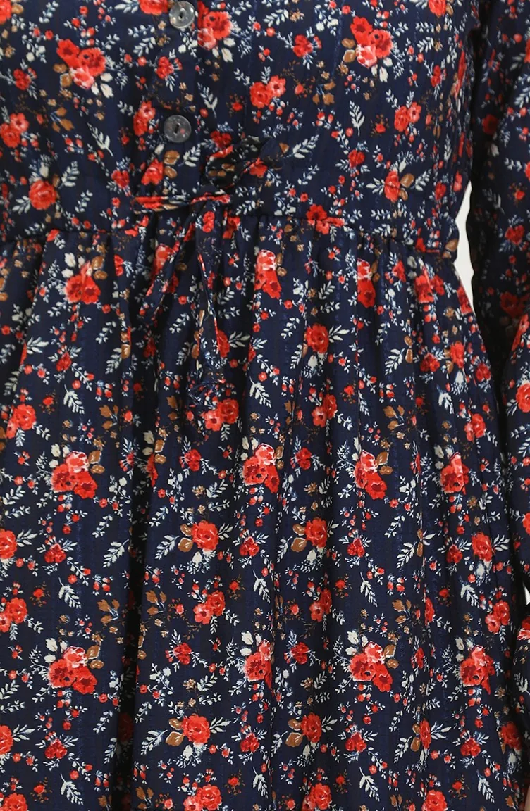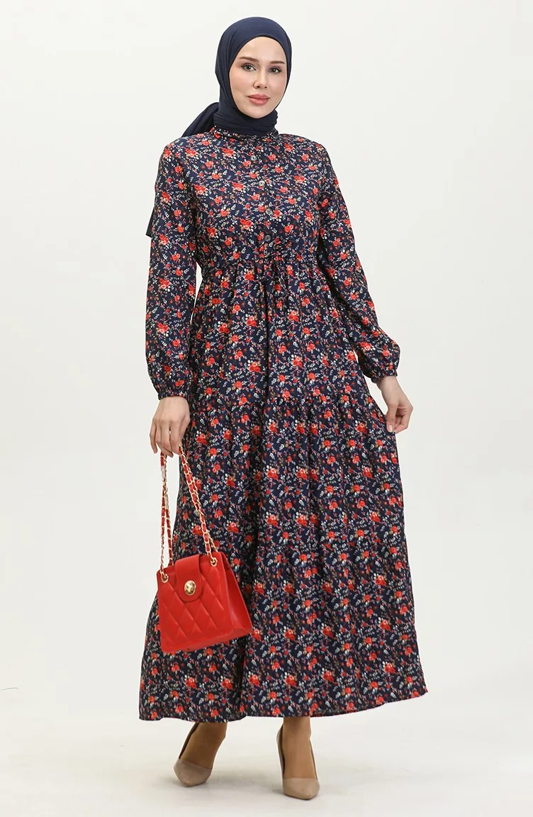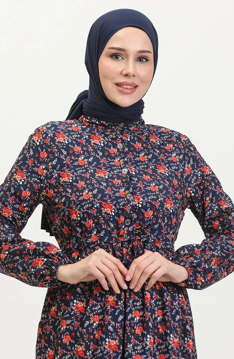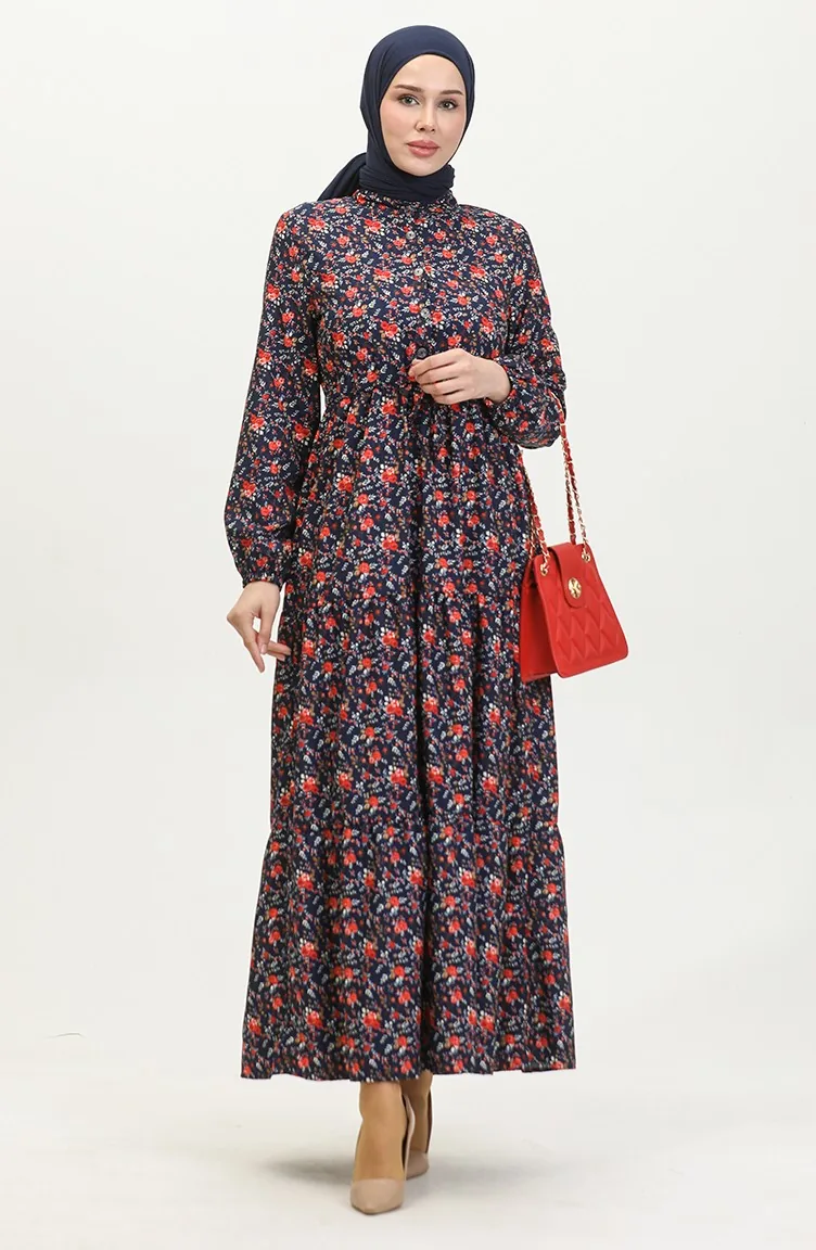 Kleid Mit Rosenmuster 0401-04 Marineblau 0401-04