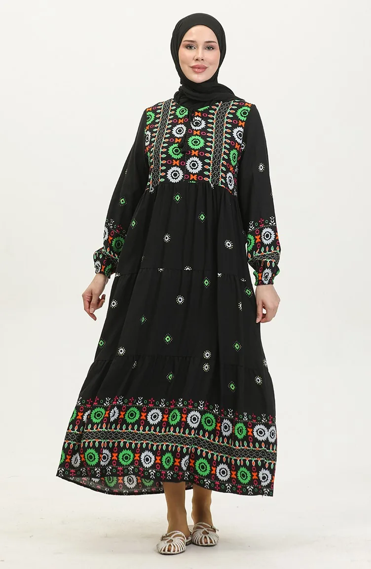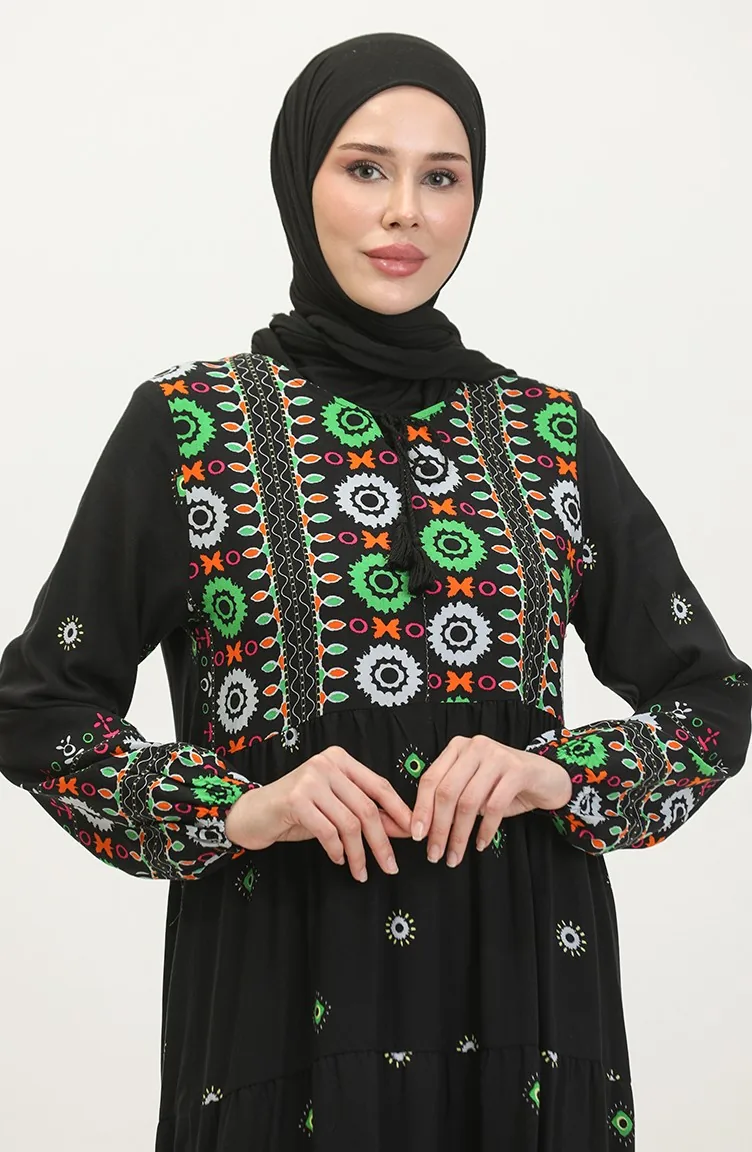 Kleid Mit Stickereimuster 4089-04 Schwarz 4089-04