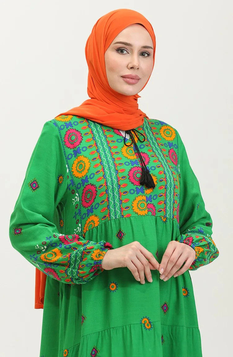 Kleid Mit Stickereimuster 4089-06 Smaragdgrün 4089-06
