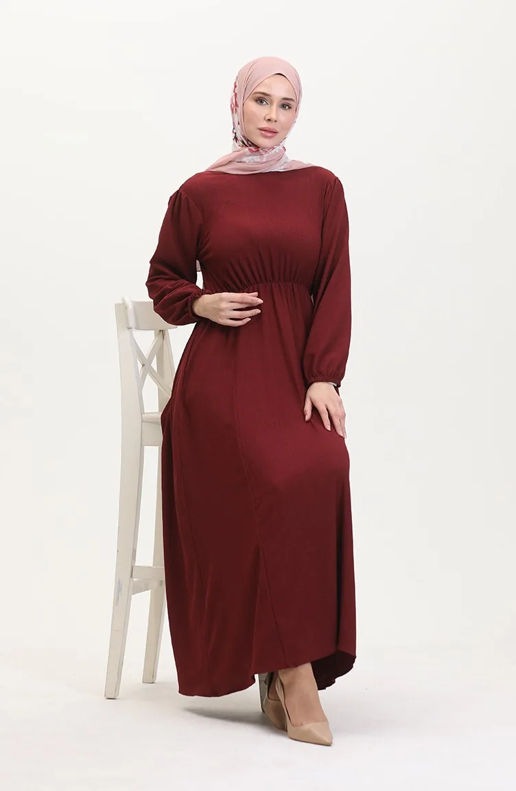 Weinrot farbe wurde verwendet. Es ist aus Krepp Stoff. Es ist eine klare Sicht. Es wurde mit Knopf verwendet, um die Verwendung zu vereinfachen. Es besteht aus Gummi Ärmeln. Jede Kleidungsseite ist die bevorzugte Nullkragenform. Es ist für vier Jahreszeiten geeignet. Große Größen Option ist verfügbar.