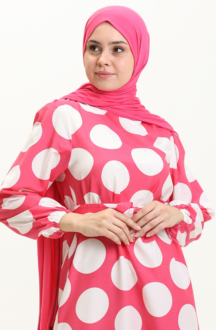 Terikoton gepunktetes gemustertes Kleid 41000-01 Rosa 41000-01