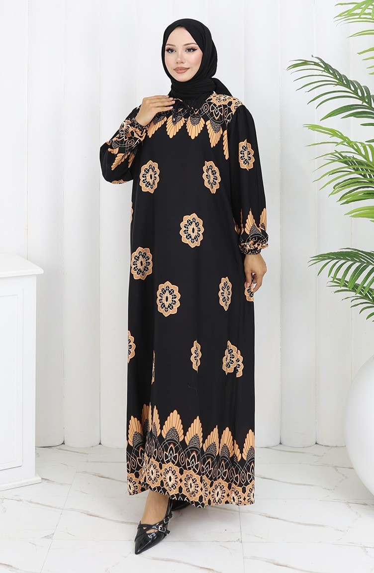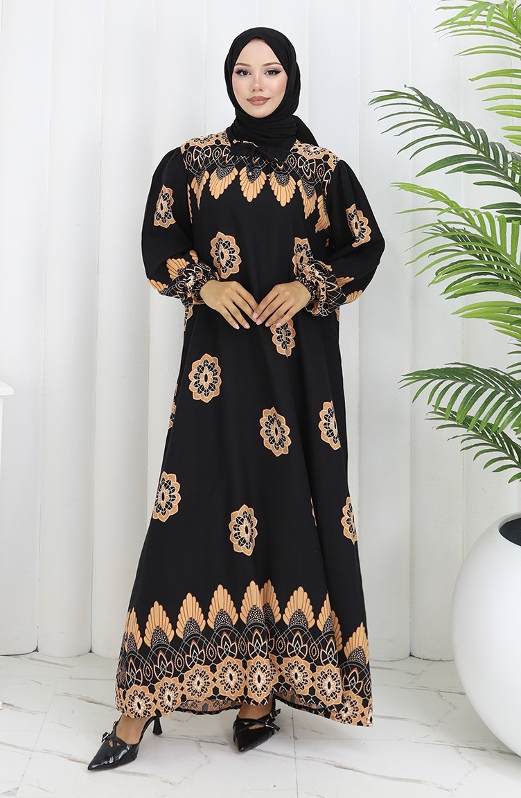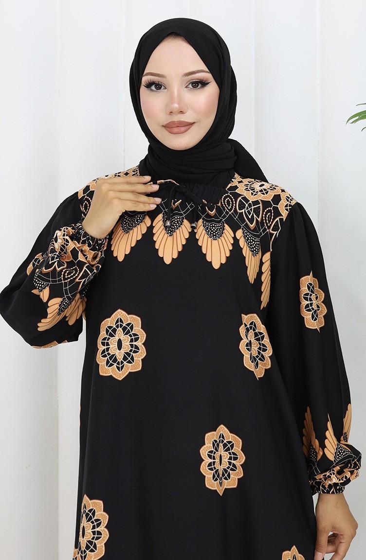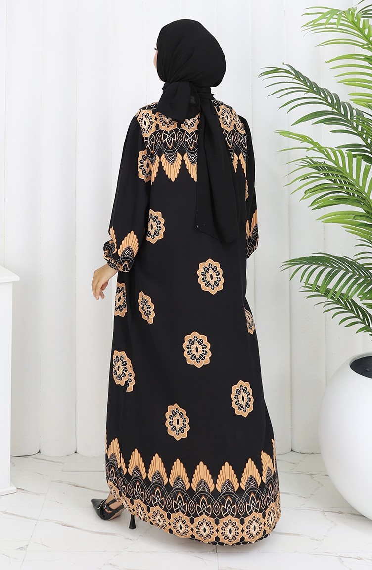 Schwarz farbe verwendet. Viskose ist ein synthetischer Stofftyp und ist bequem und nützlich zu verwenden. Entworfen mit gemustertem Stoff. Es ist Langärmlig. Entwickelt für den Sommer. Frau. Große Größen Option ist verfügbar.