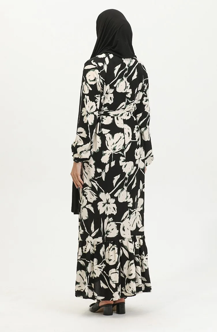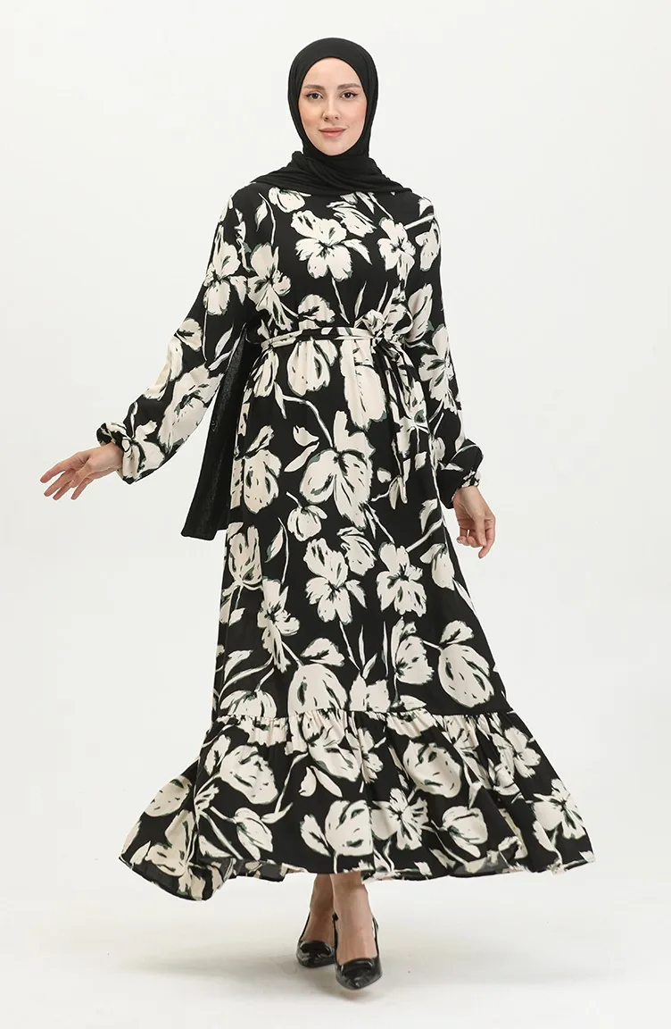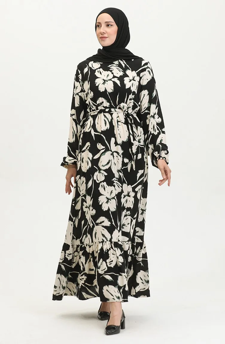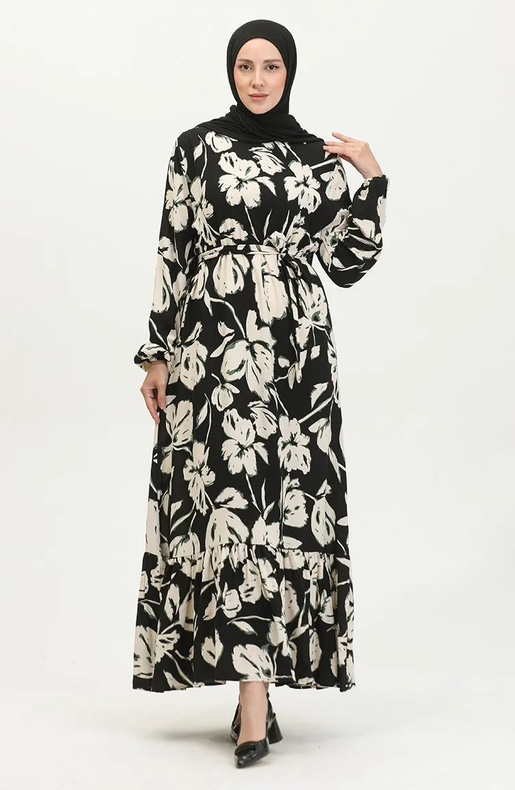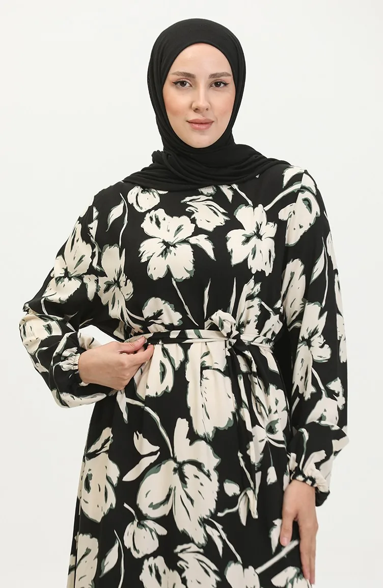 Viskosekleid Mit Blumenmuster 5007-04 Schwarzgrün 5007-04