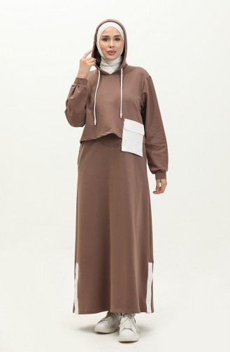 Zweifädiges Sportkleid Mit Kapuze 24K9090-03 Braun 24K9090-03