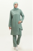 Asymmetrisch Geschnittener Zweifaden-Trainingsanzug 03076-03 Schwarz 03076-03