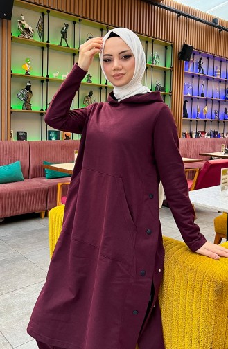 Detaillierter Zweifaden-Trainingsanzug Mit Druckknopfverschluss 3071-04 Weinrot 3071-04