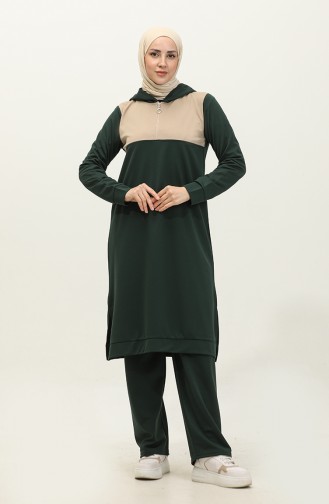 Doppelanzug Mit Kapuze Und Reißverschluss 3021-01 Smaragdgrün 3021-01