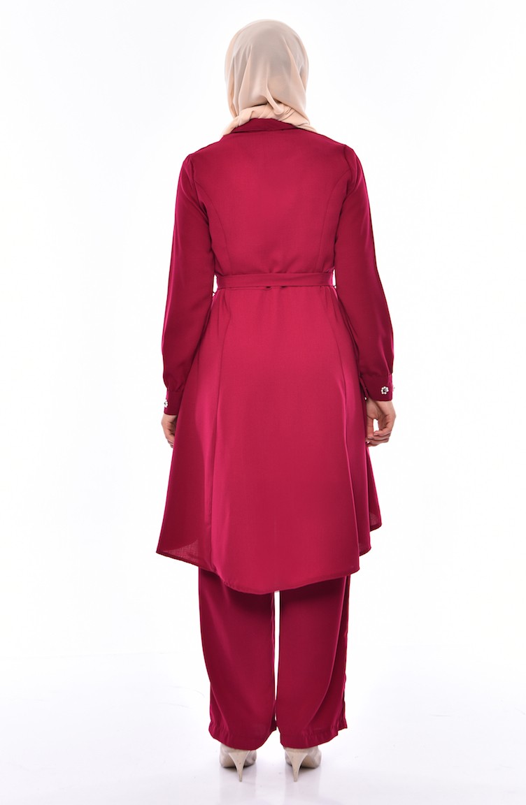 İncili Tunik Pantolon İkili Takım 1383-01 Mürdüm 1383-01