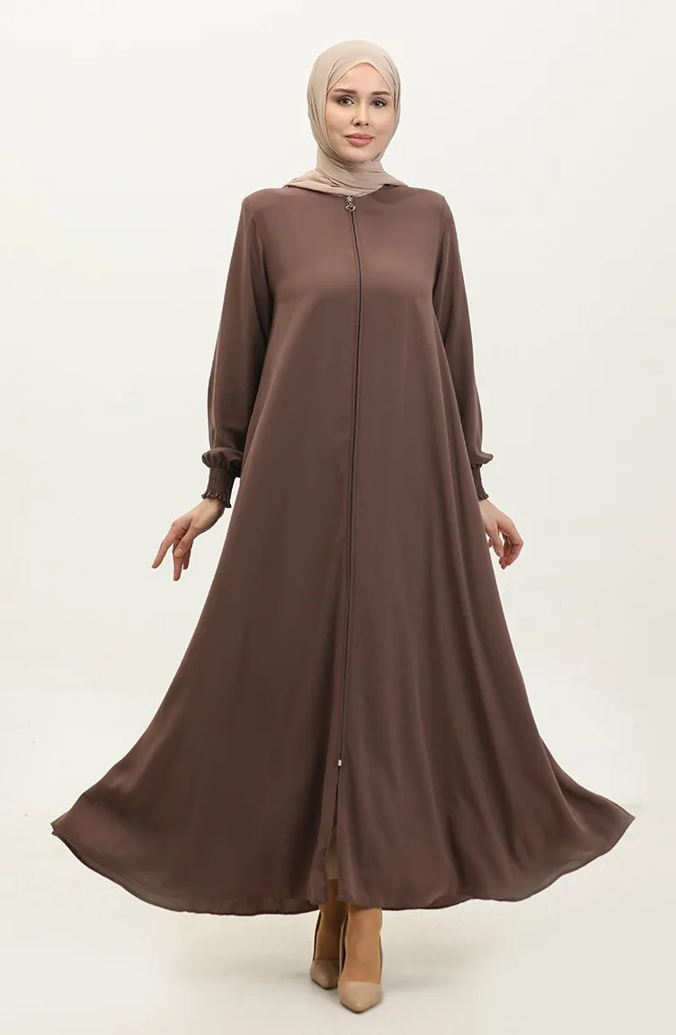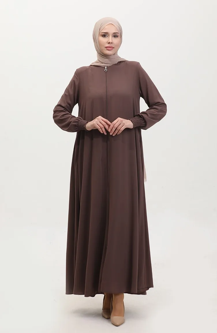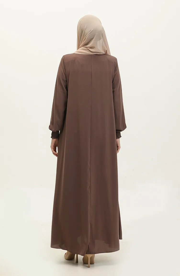 Abaya Mit Elastischen Ärmeln 5049-09 Milchkaffee 5049-09