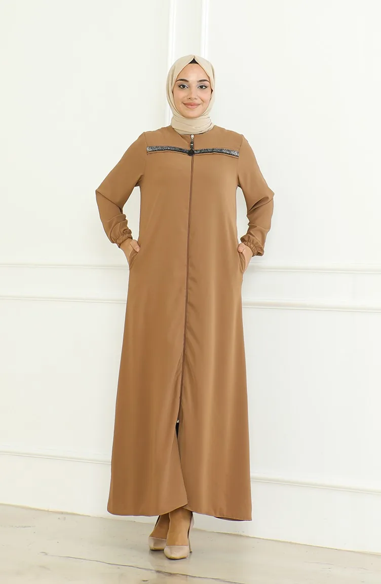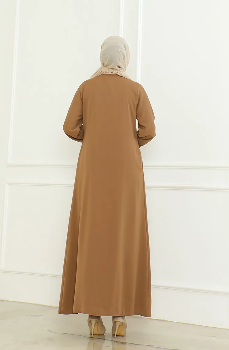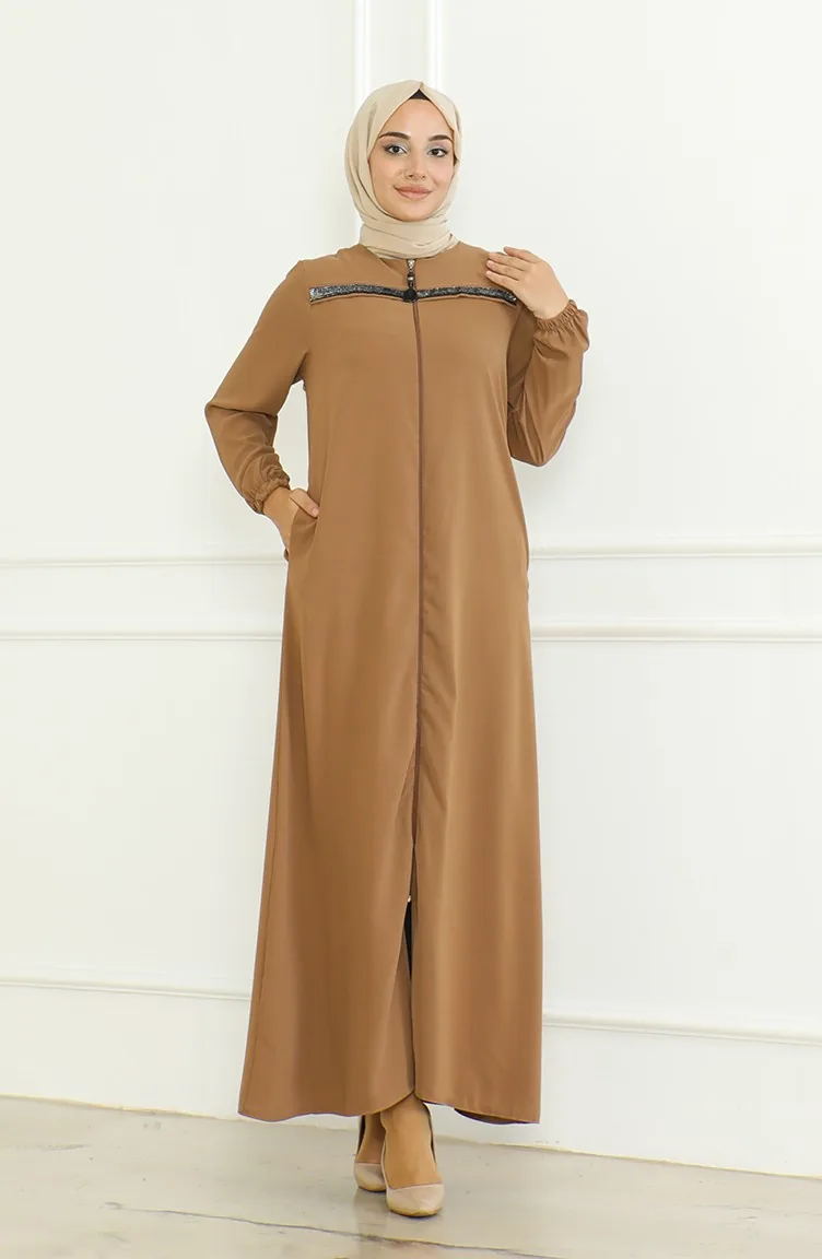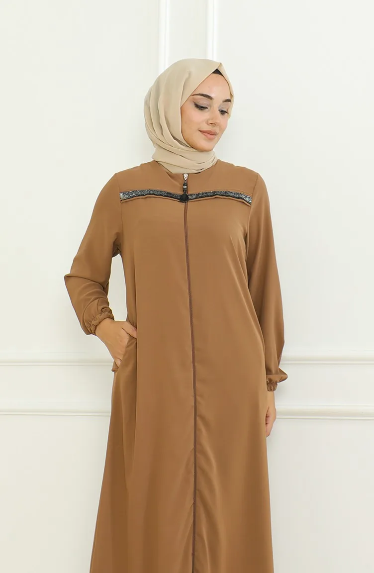 Abaya Mit Reißverschluss Und Elastischen Ärmeln 0475-01 Braun 0475-01