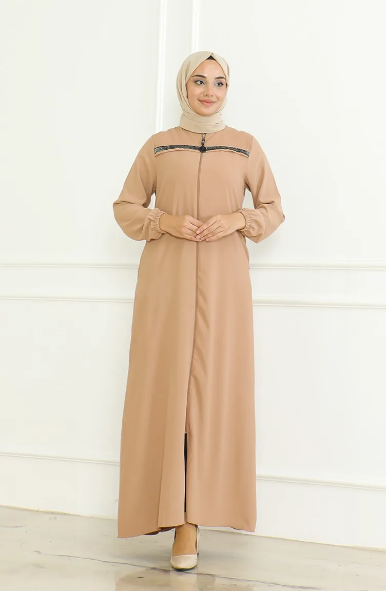 Abaya Mit Reißverschluss Und Elastischen Ärmeln 0475-02 Kaffee Mit Milch 0475-02
