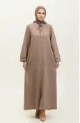 Große Abaya Mit Elastischen Ärmeln Und Taschen 5197-02 Nerz 5197-02